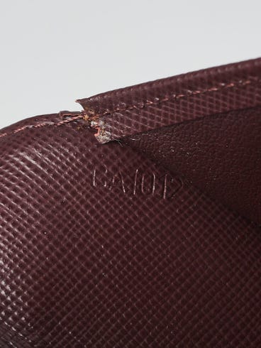 The exterior canvas is clean and beautiful with no obvious wear. The goldtone hardware is crisp and bright. The interior is clean with a small tear to the to the bottom of the flat pocket (see date code image).