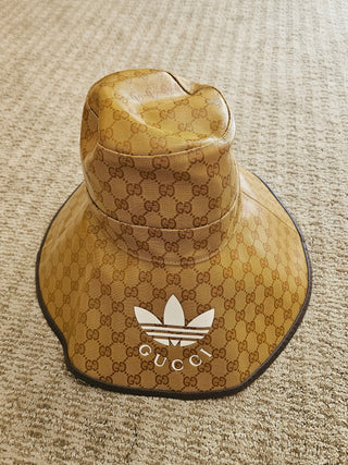 Gucci Brown GG Monogram Leather Bucket Hat w/ Tags XS