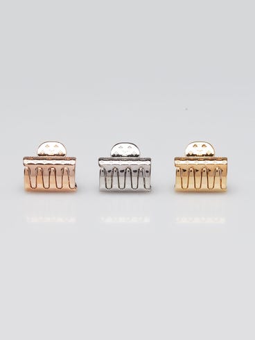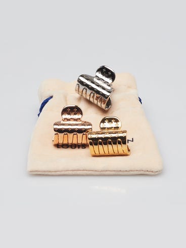 Add some sass to your hair with this adorable Louis Vuitton Nanogram Hair Clips. Featuring bright metallic metal, these make a perfectly fun hair accessory!