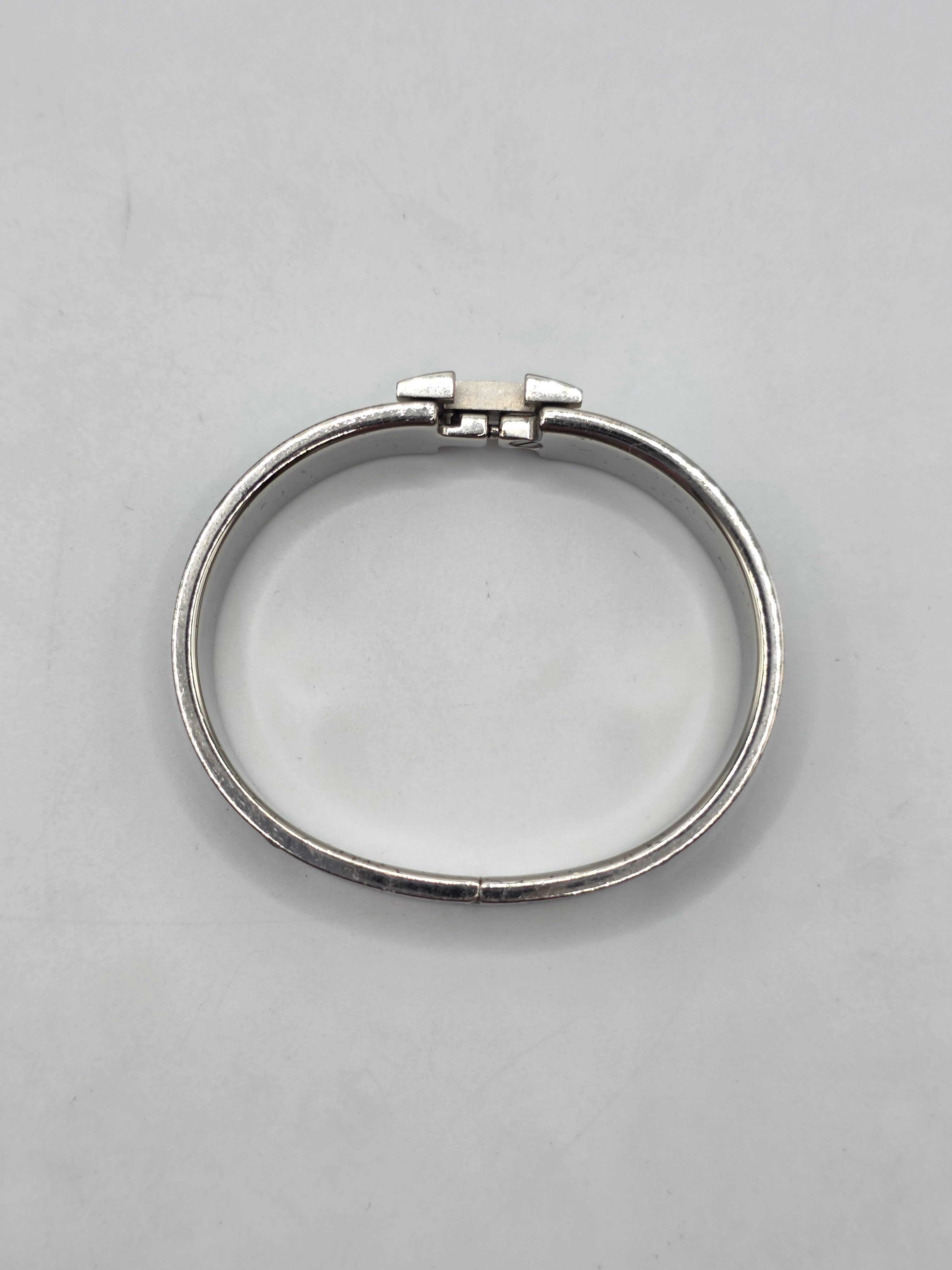 The iconic Hermes Clic H bracelet is a favorite amount celebrities and for good reason. With it's understated yet unmistakable design, the Clic H is great for everyday wear along and goes great with just about everything. Size PM. 2.25" diameter, 7.25" outside circumference, 0.5" wide. Current retail price is $770.