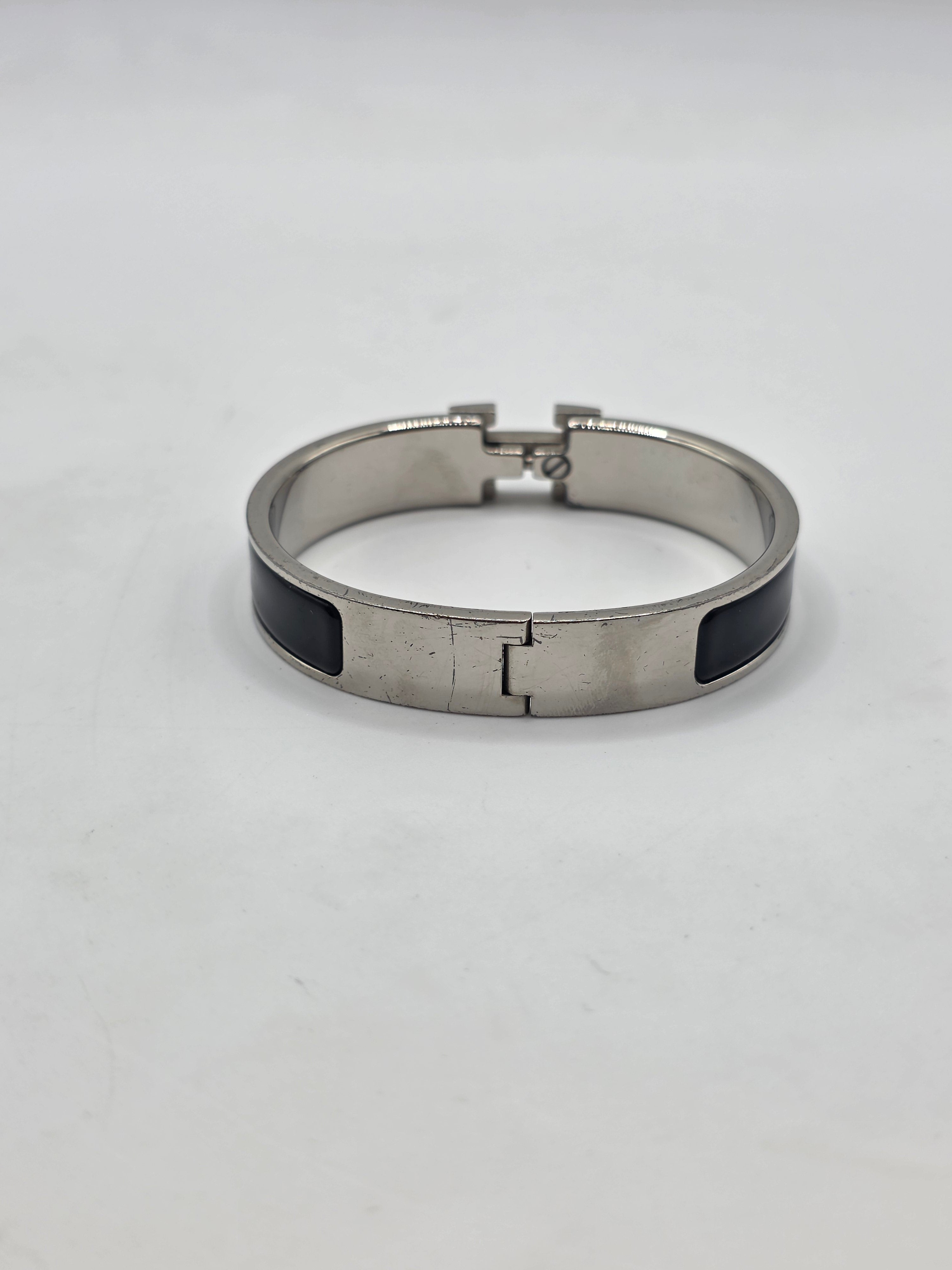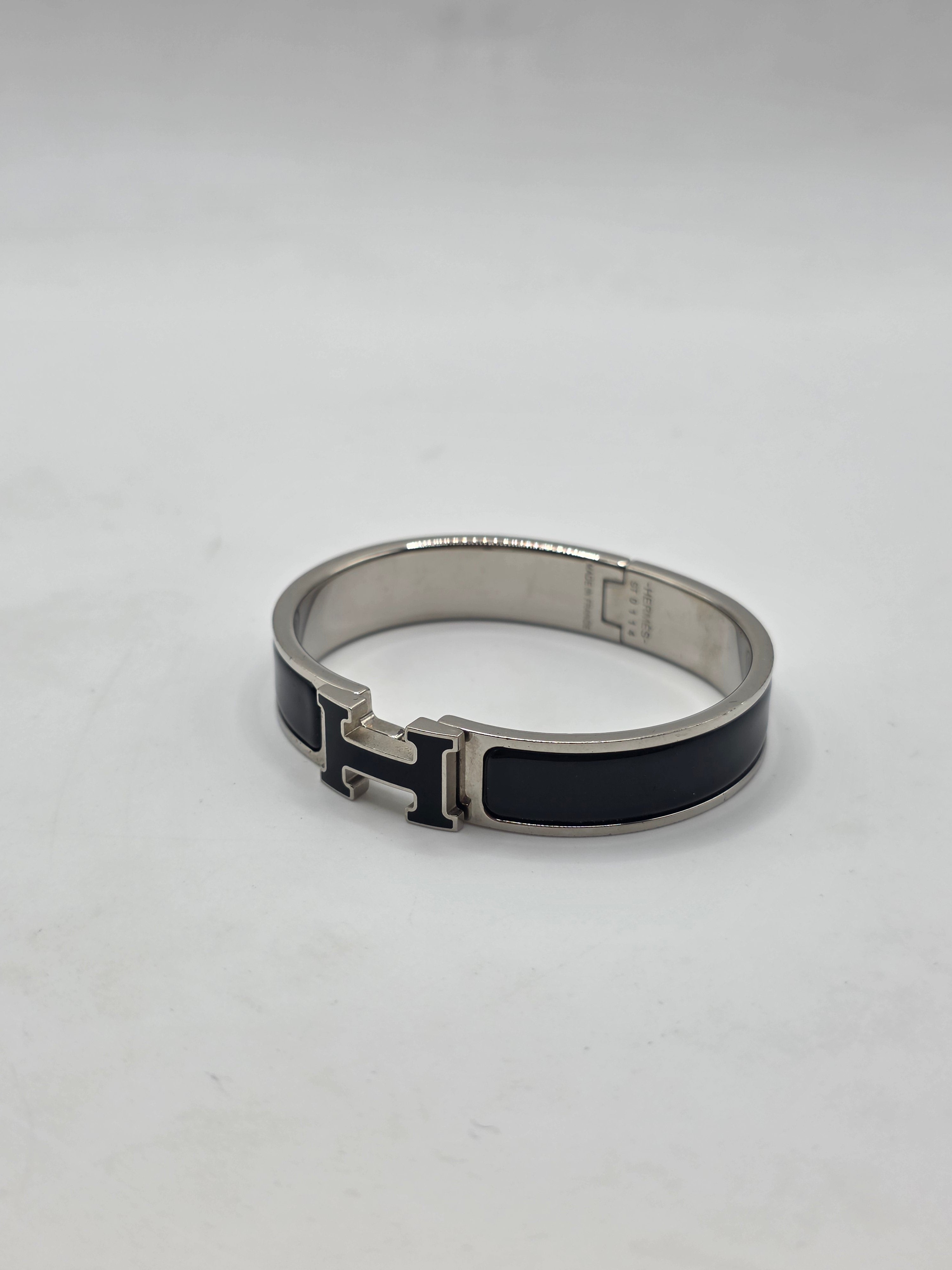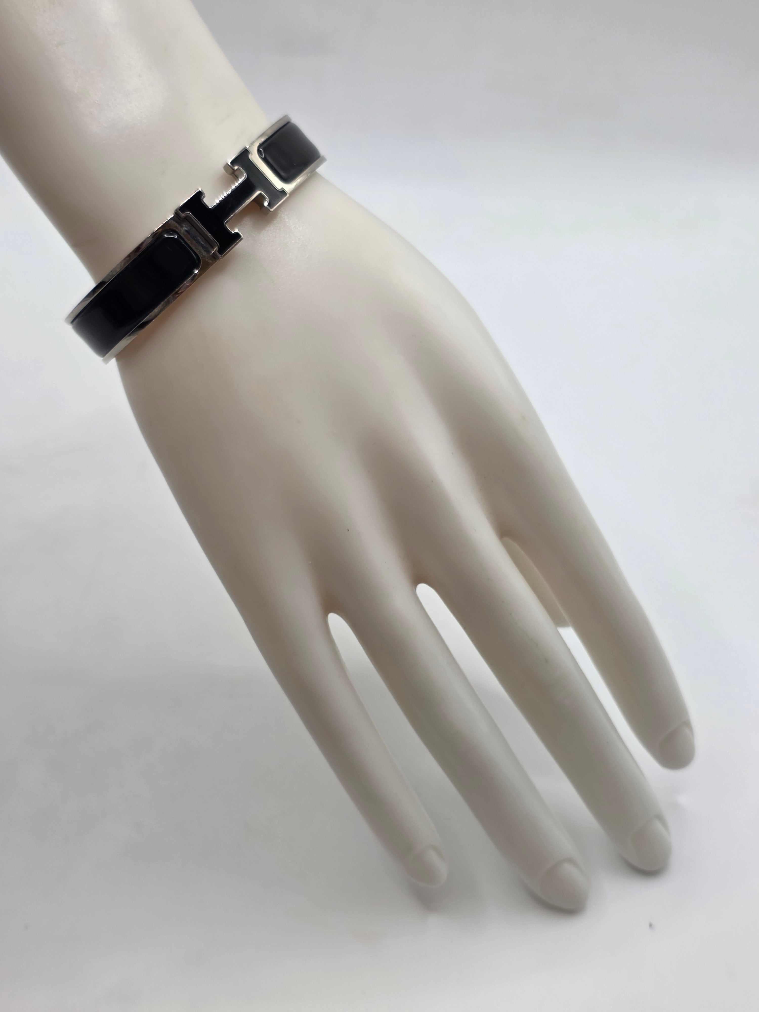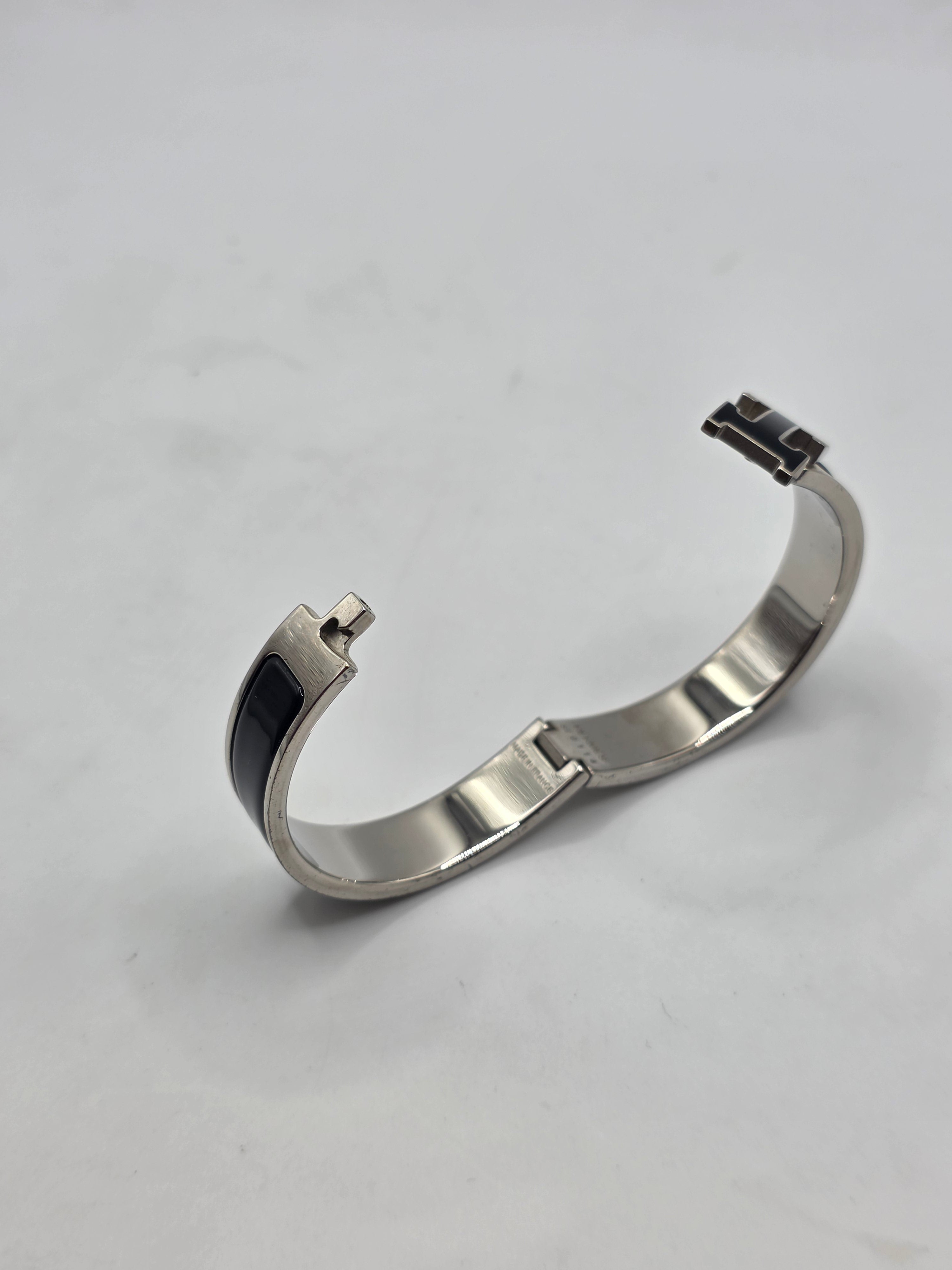 Hermes Black Enamel Palladium Plated Clic-H Narrow PM Bracelet