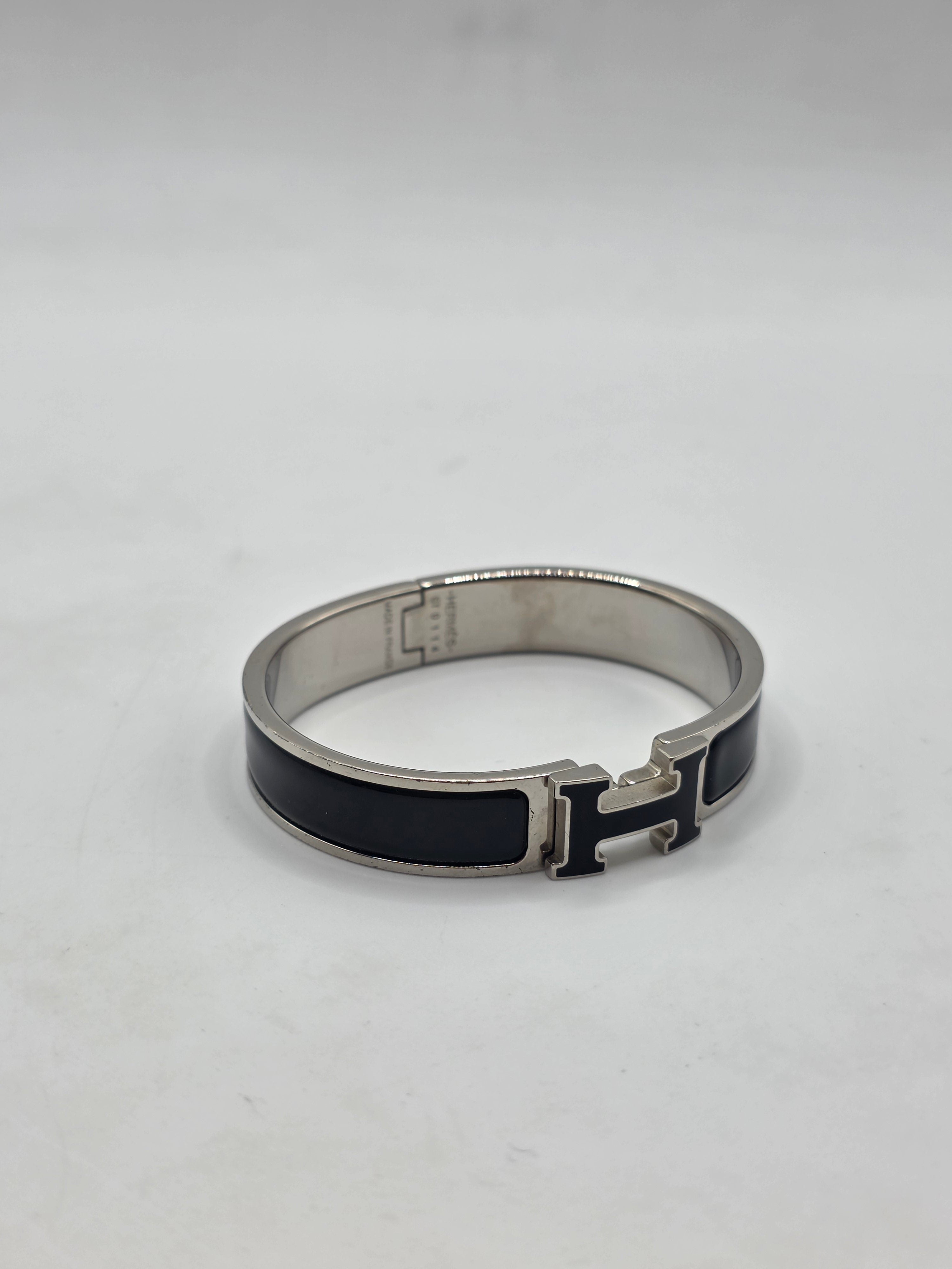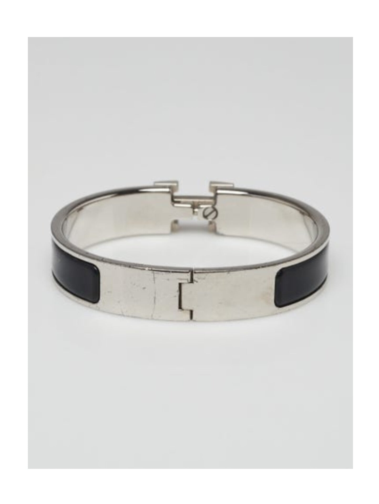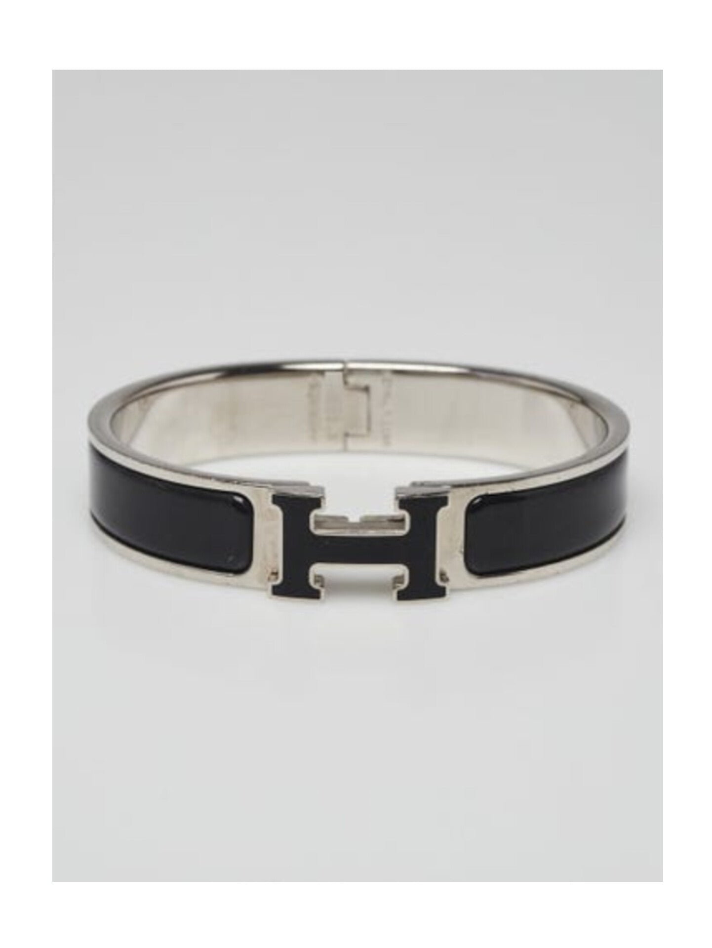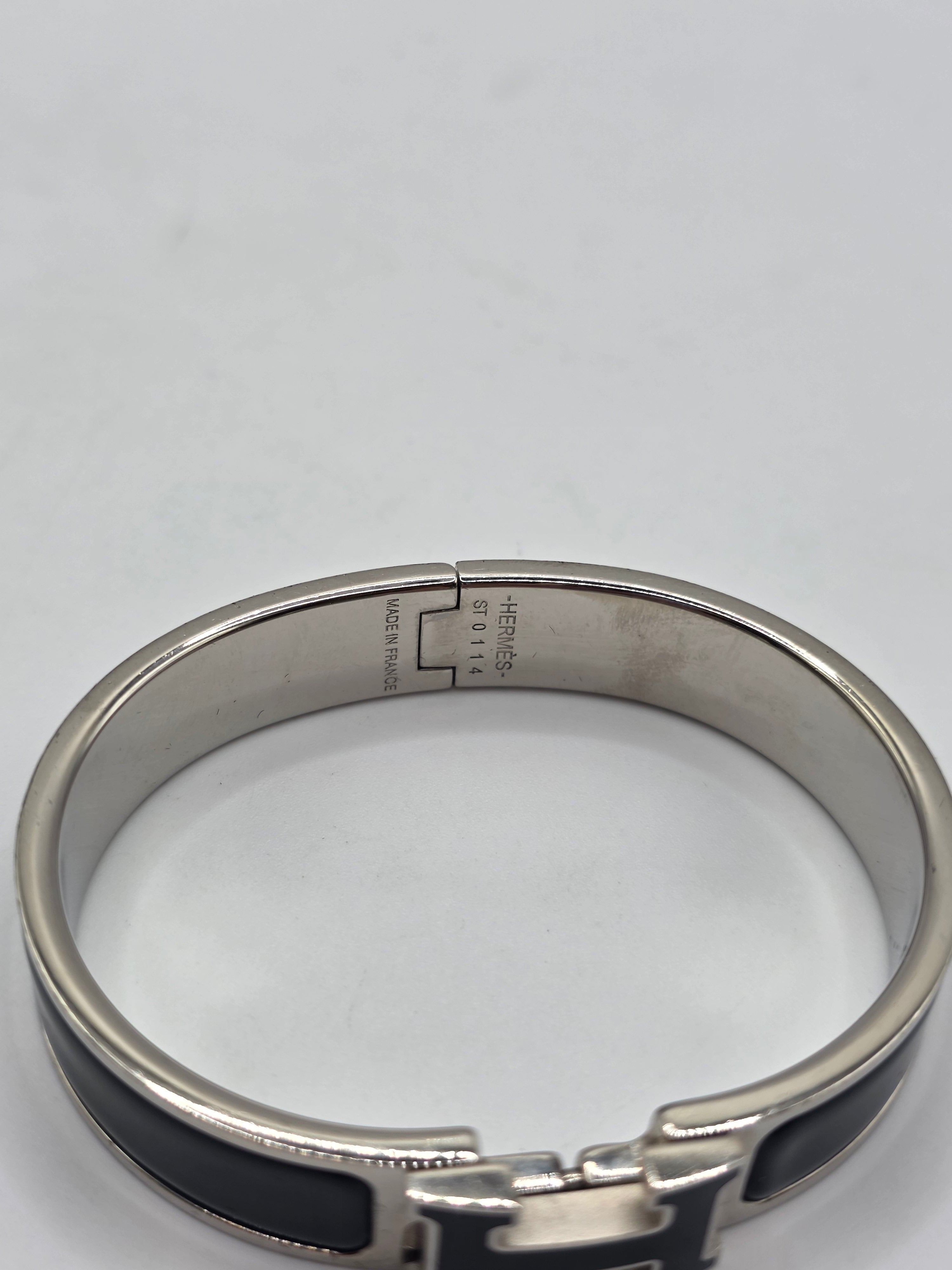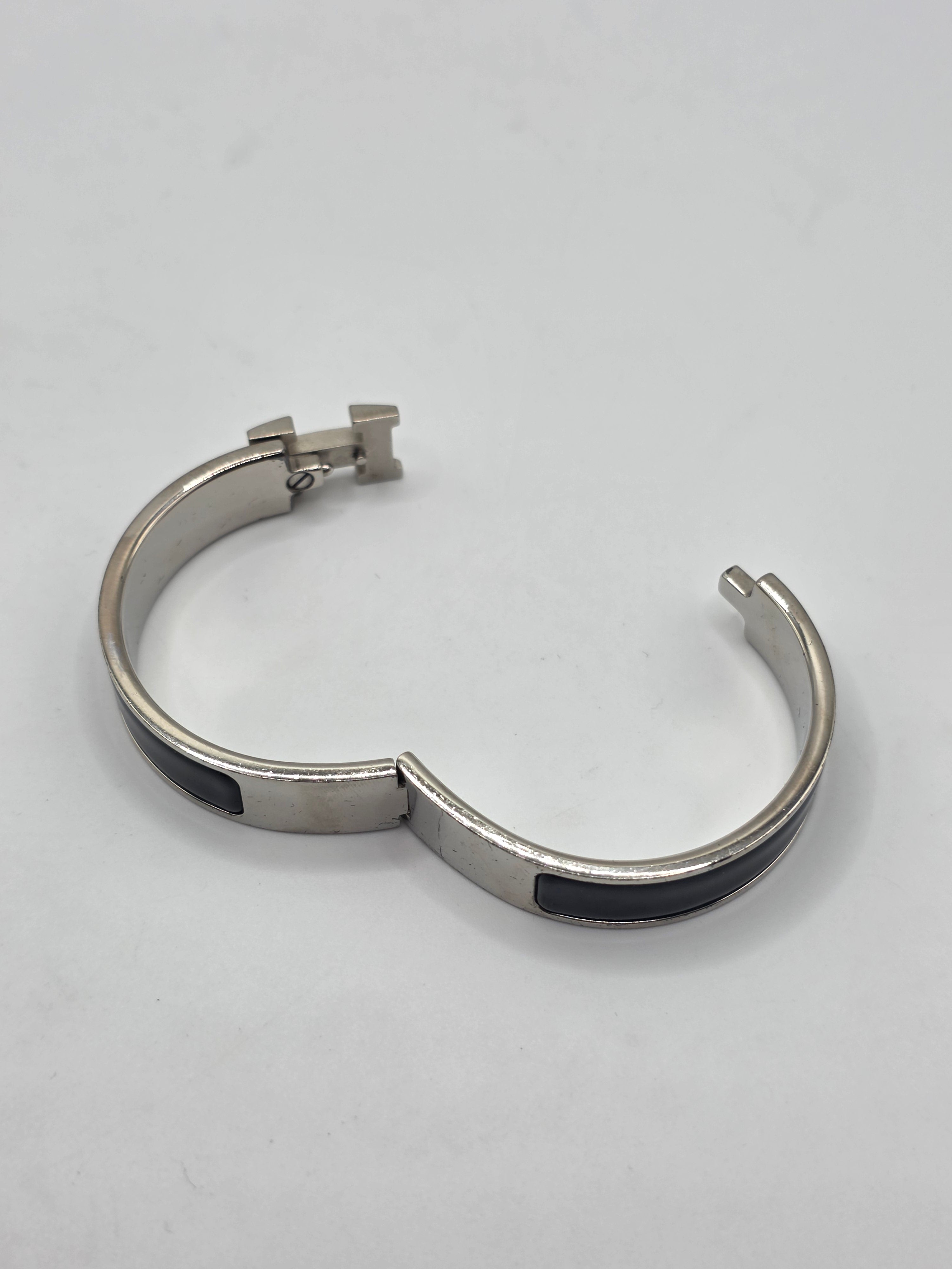Hermes Black Enamel Palladium Plated Clic-H Narrow PM Bracelet