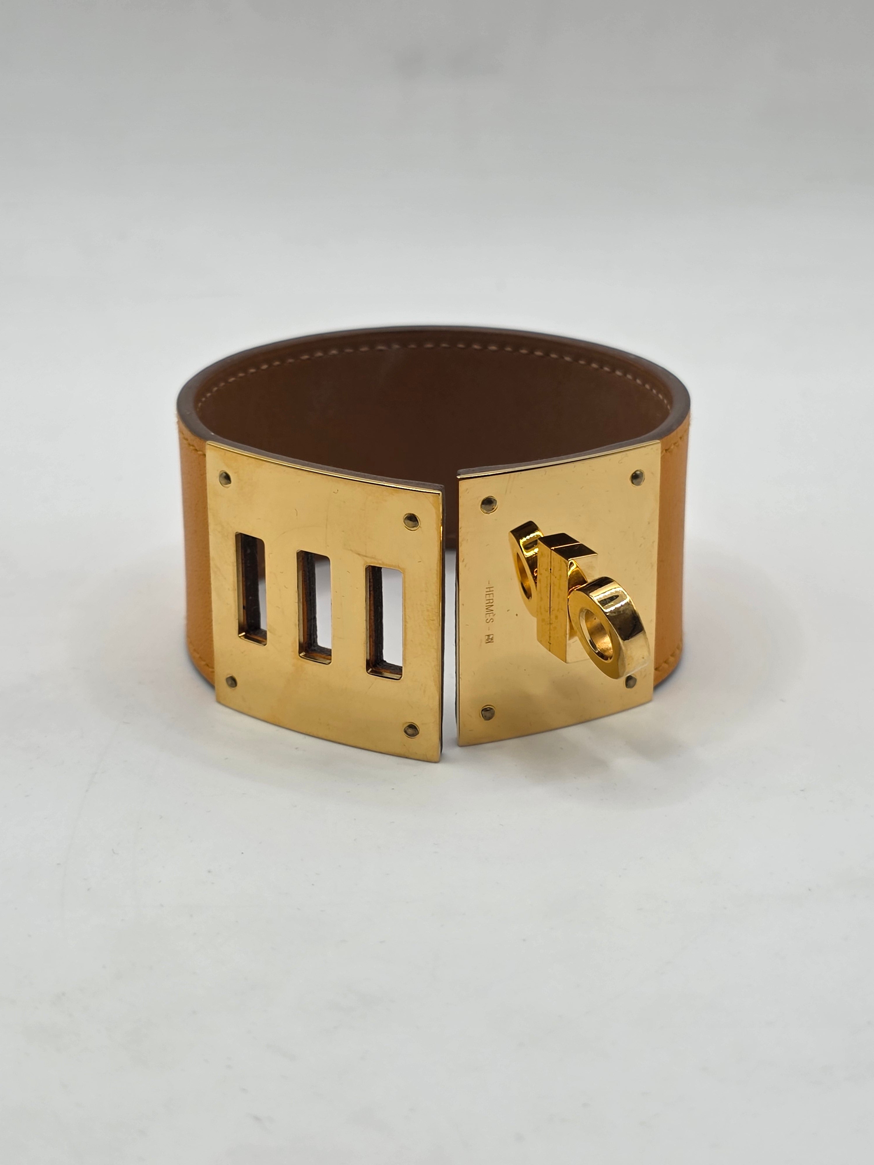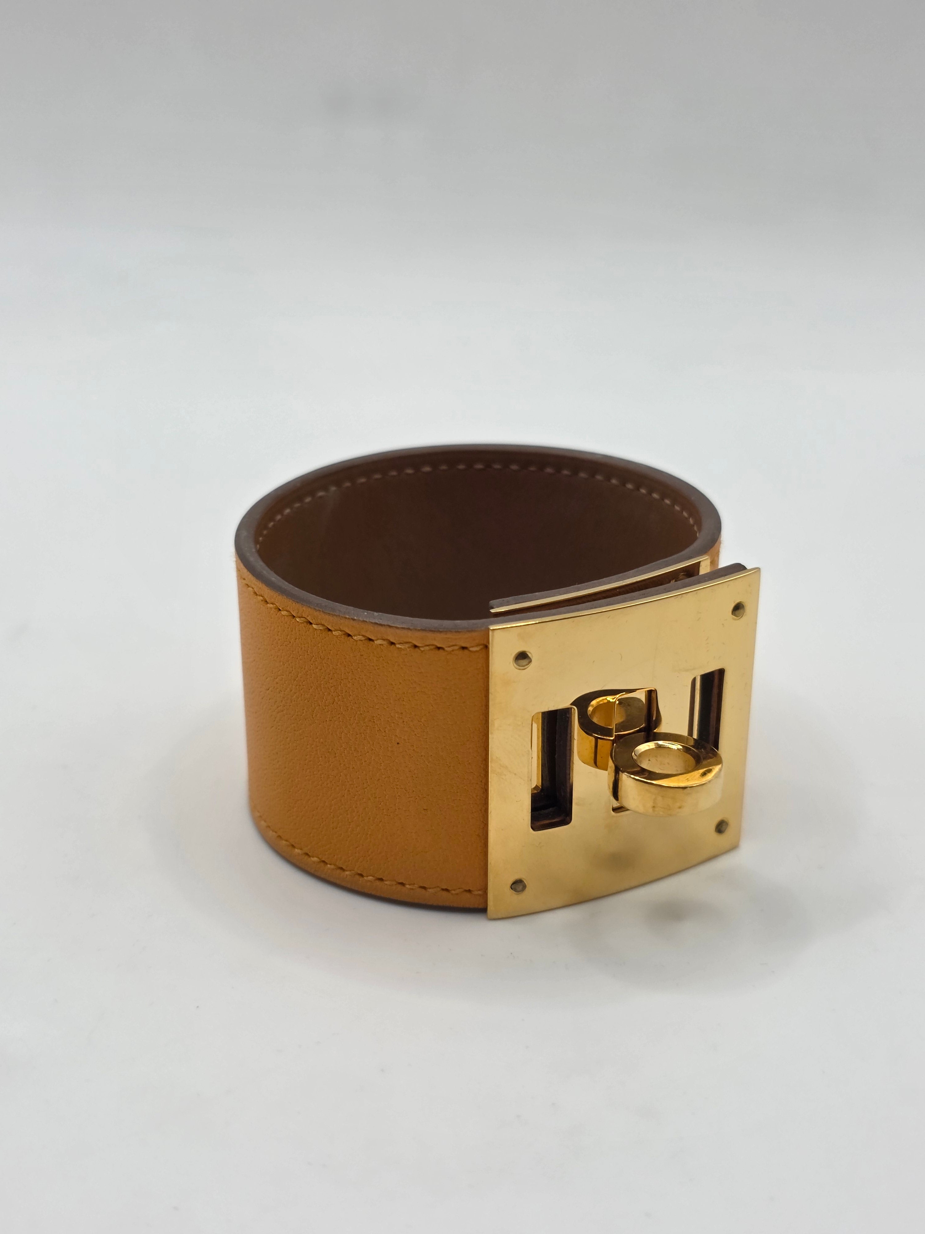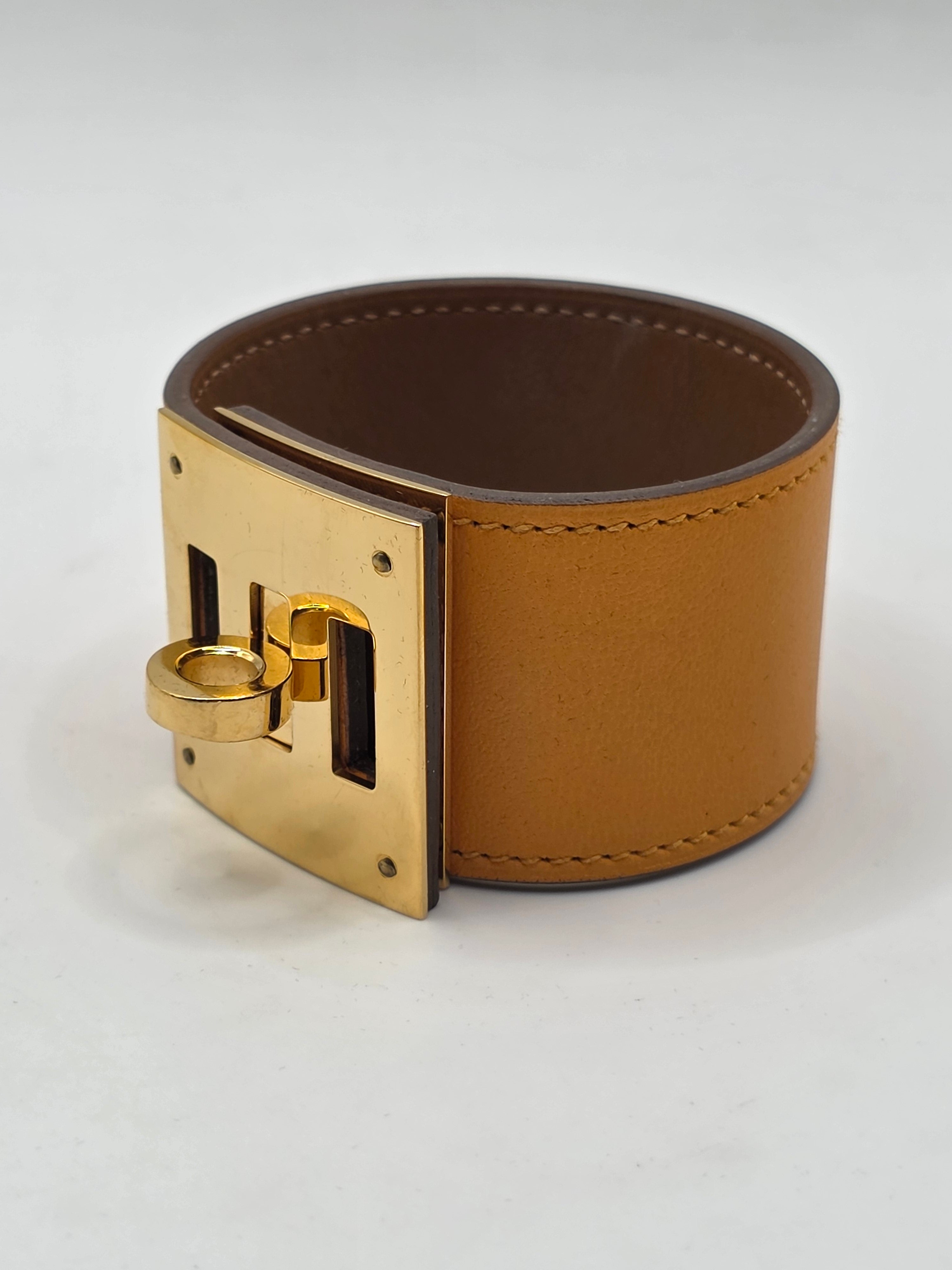 Hermès Brown Leather Gold Plated Kelly Dog Wrap Bracelet
