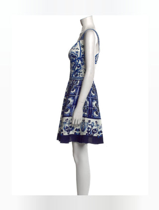 Dolce & Gabbana White Blue Printed Silk Mini Dress 44 sz NWT