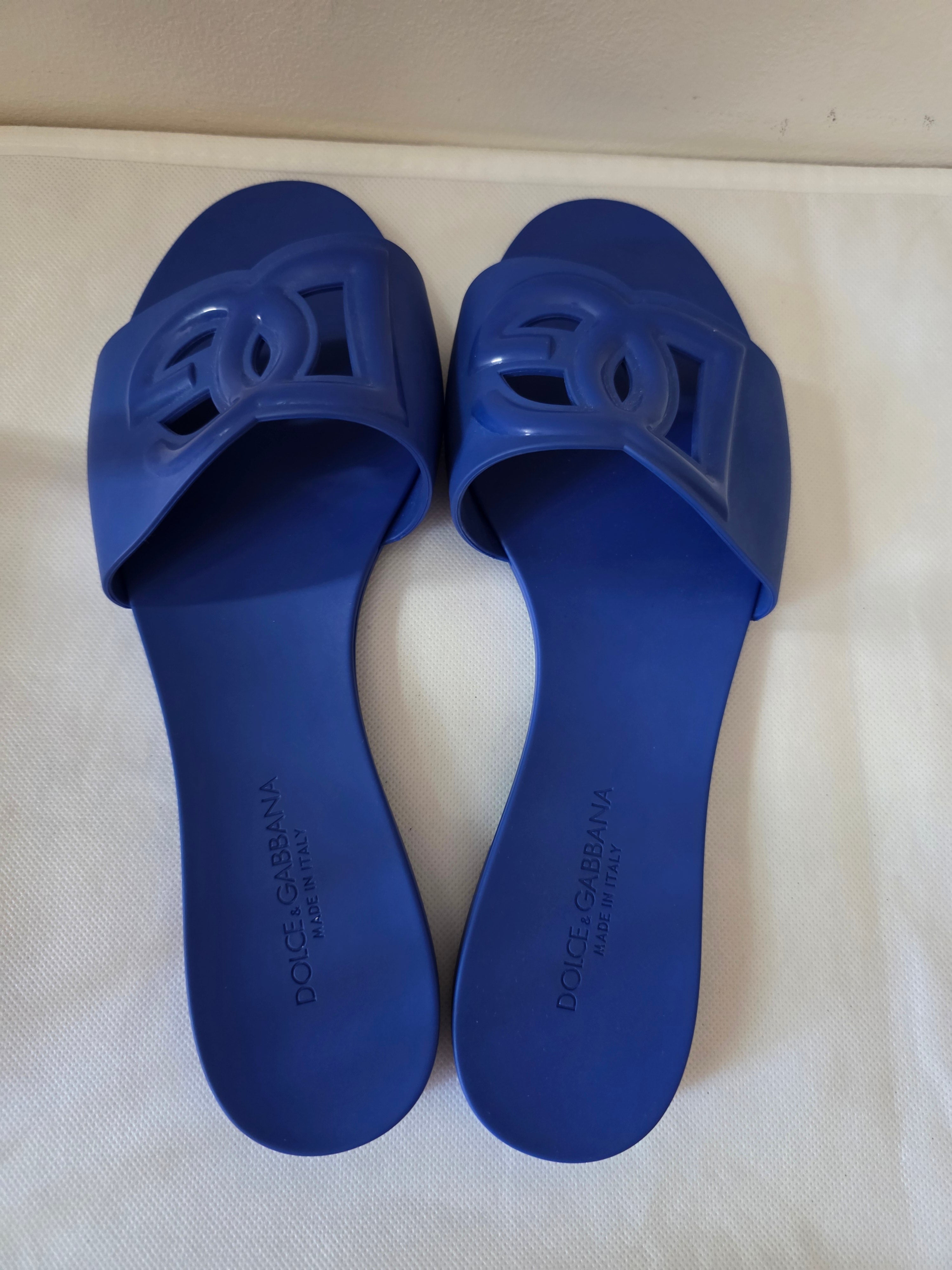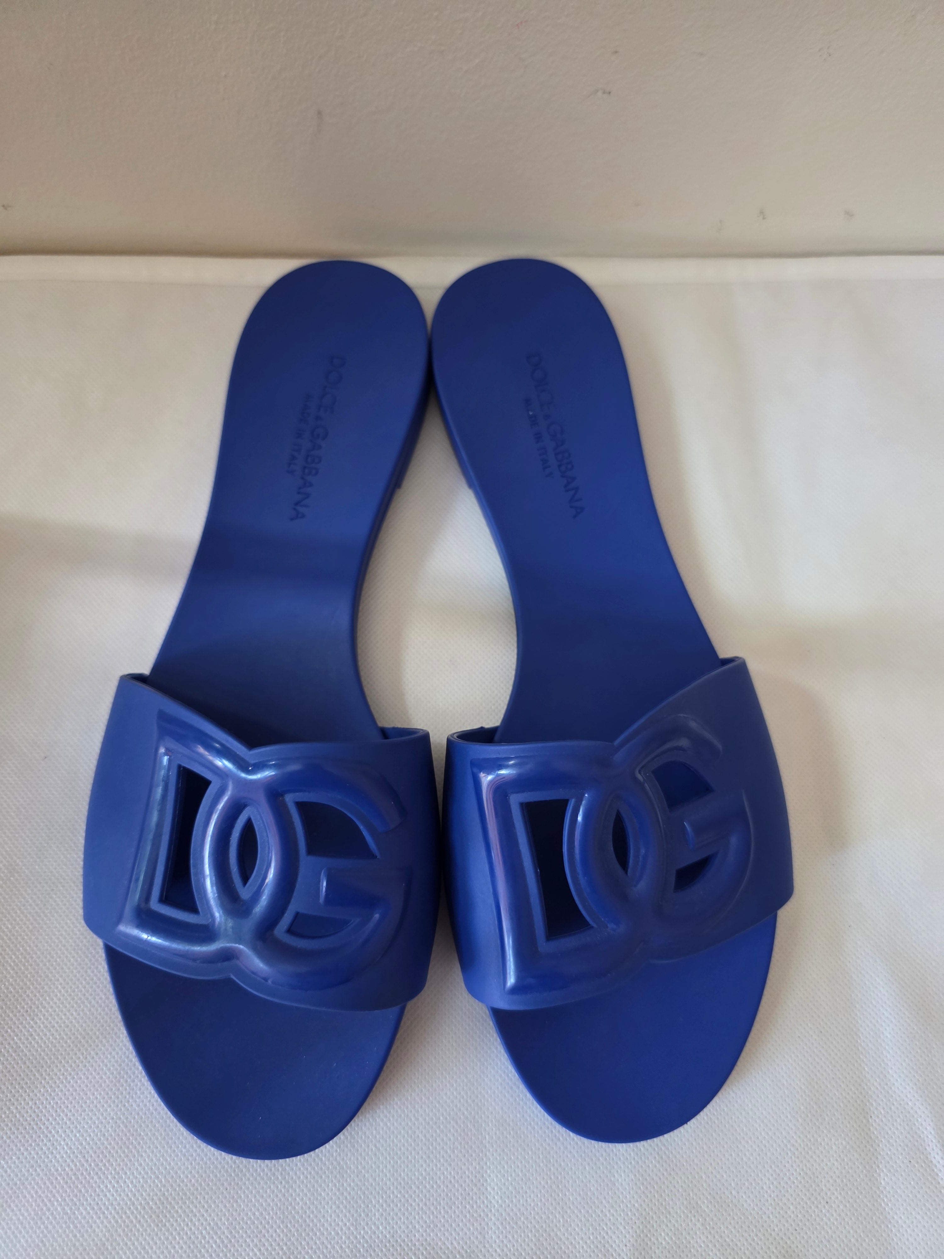 Dolce & Gabbana Blue rubber DG logo sandals 40 sz