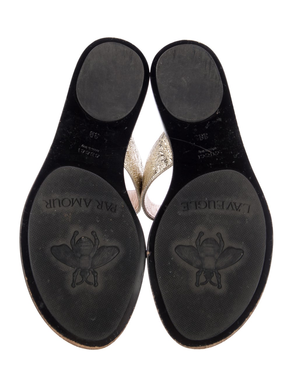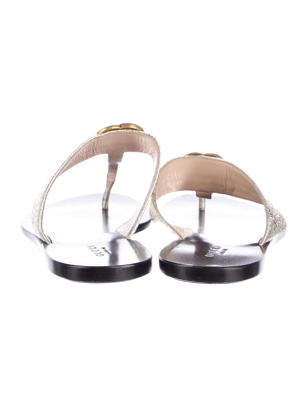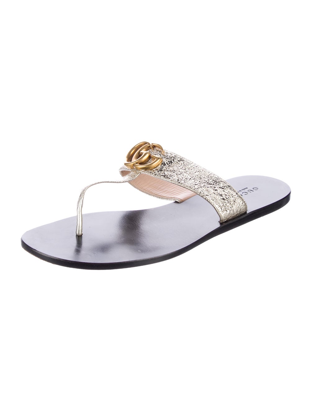 Gucci Metallic Gold Double G Logo Leather Sandals 38 sz