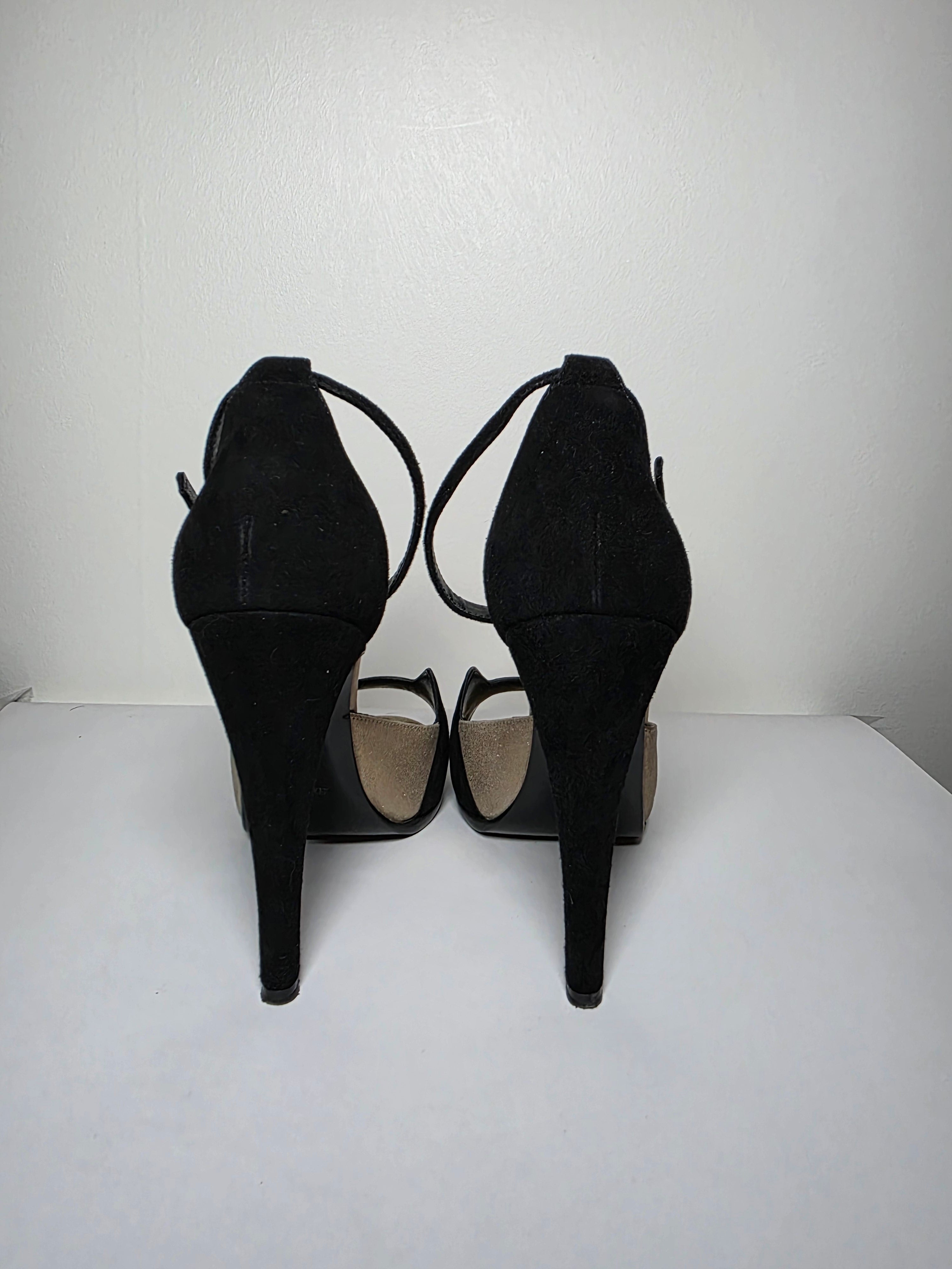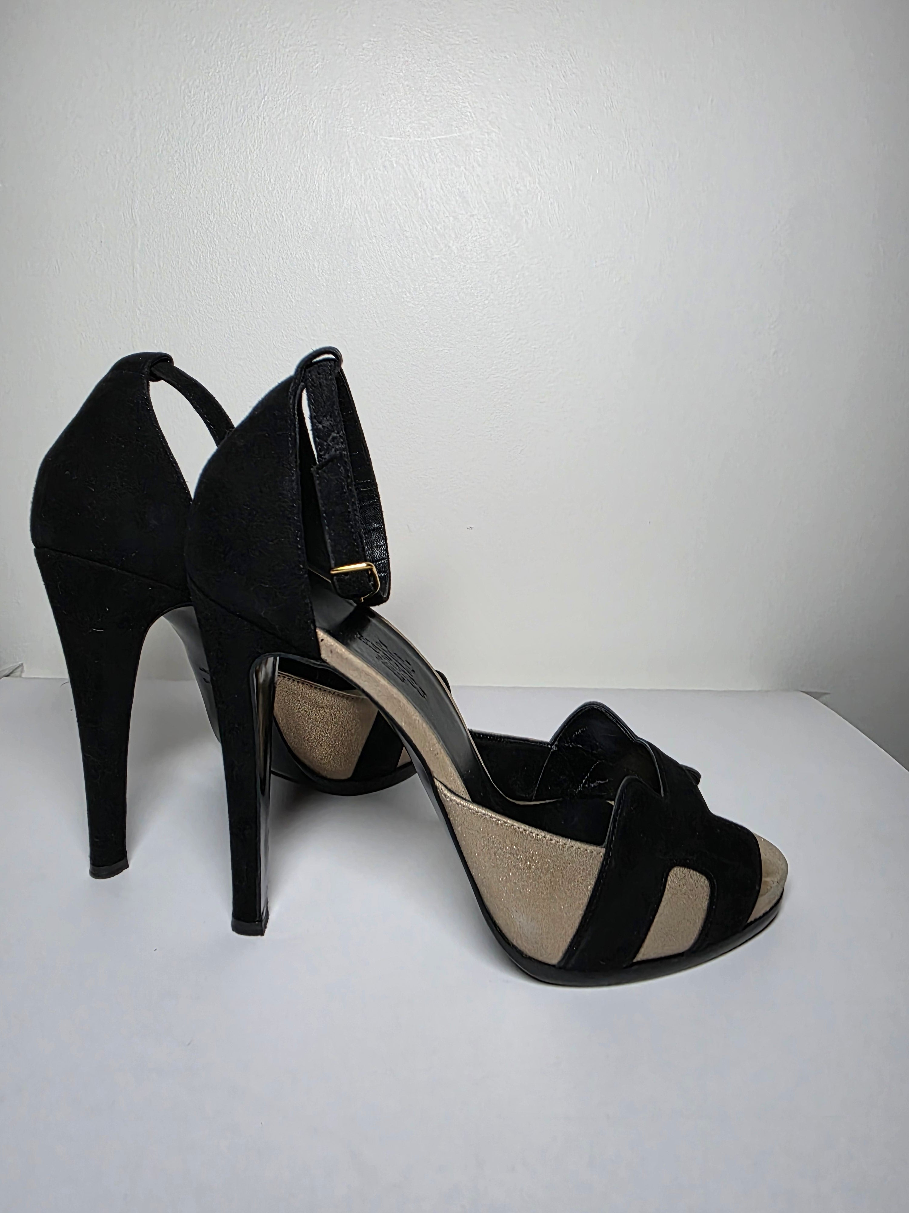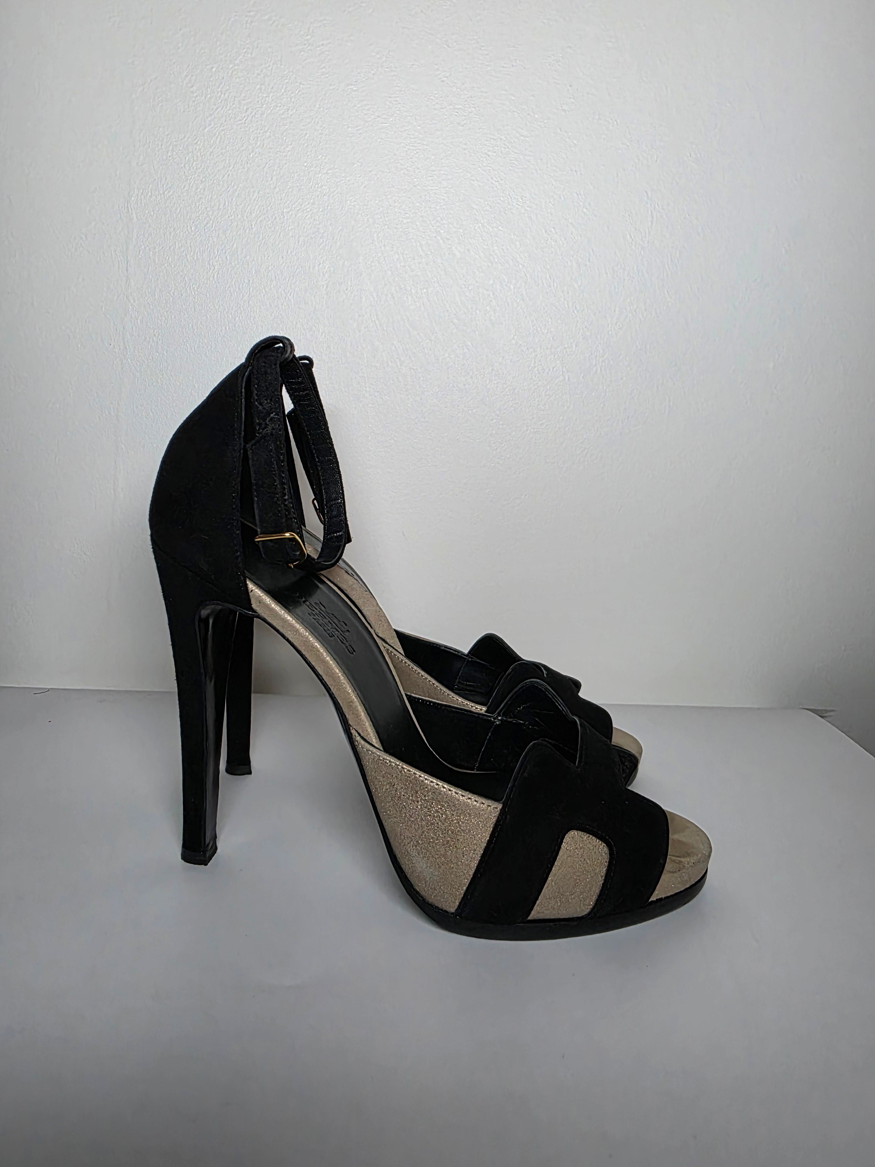 The Hermès Beige Black Premiere H Logo D'Orsay Pumps feature black suede construction and an H logo design, combining elegance with contemporary style. With a round-toe shape and platform design, these pumps provide enhanced comfort, while the wrap-around straps and buckle closure ensure a secure fit, making them suitable for various occasions.