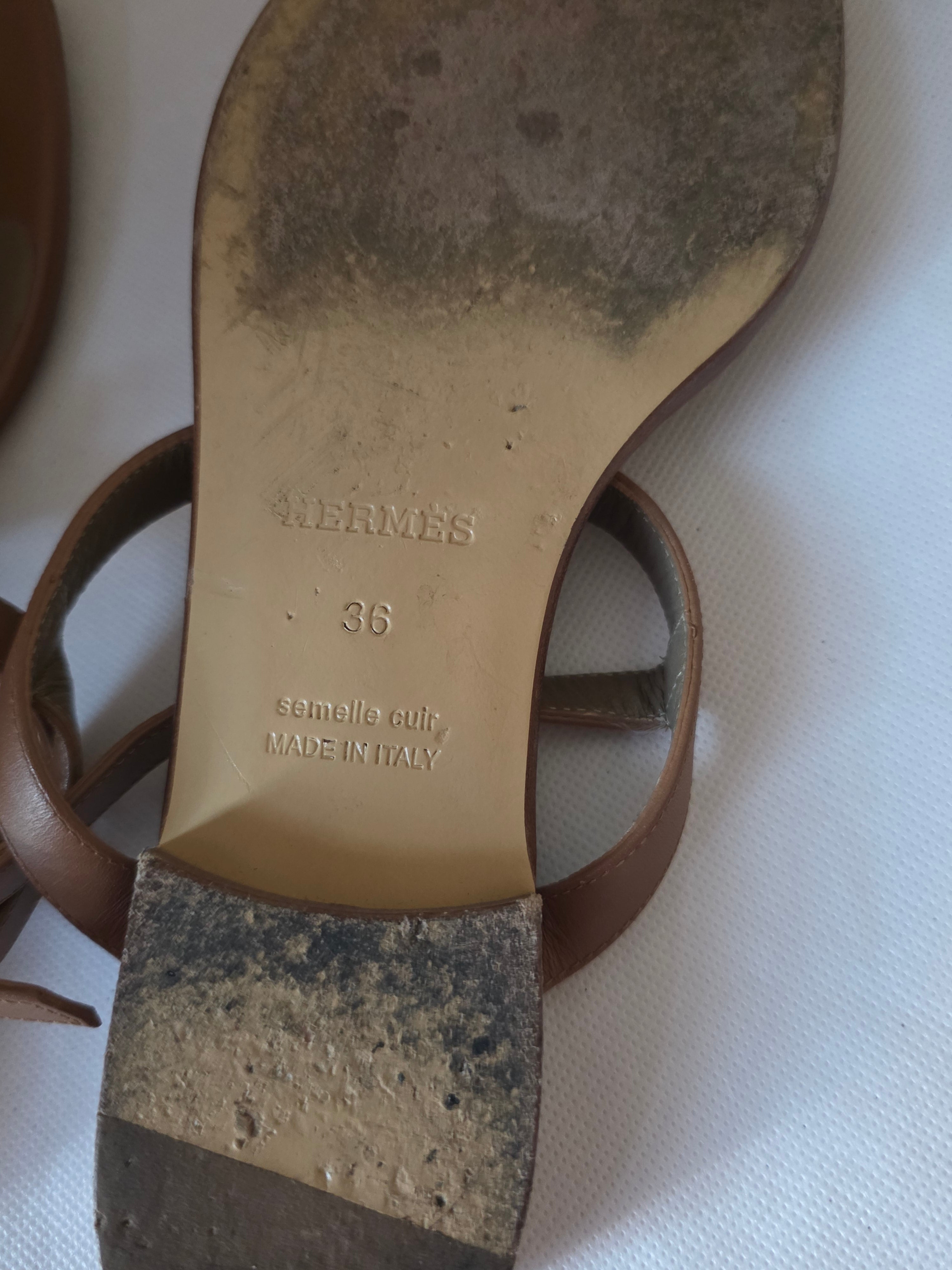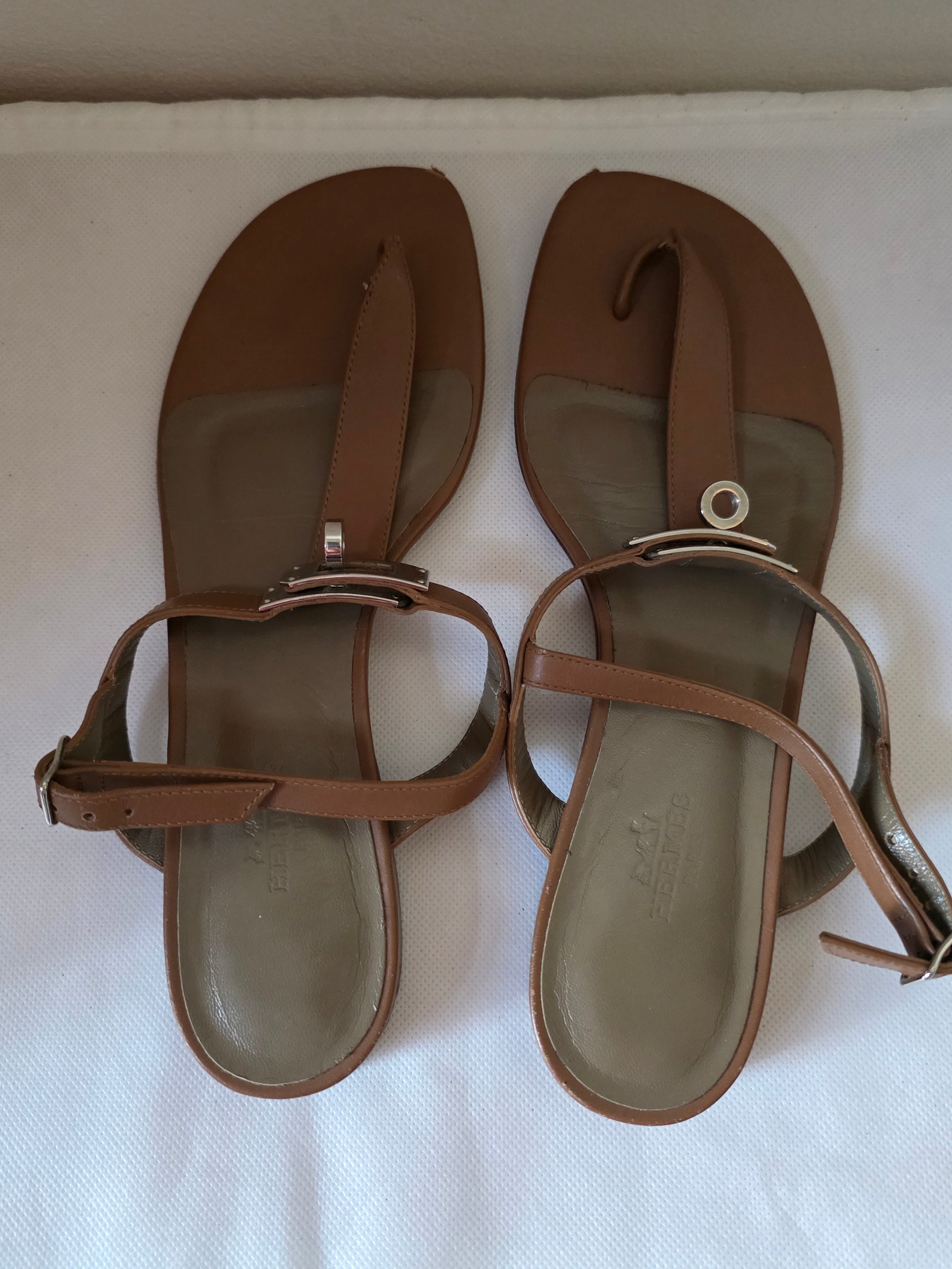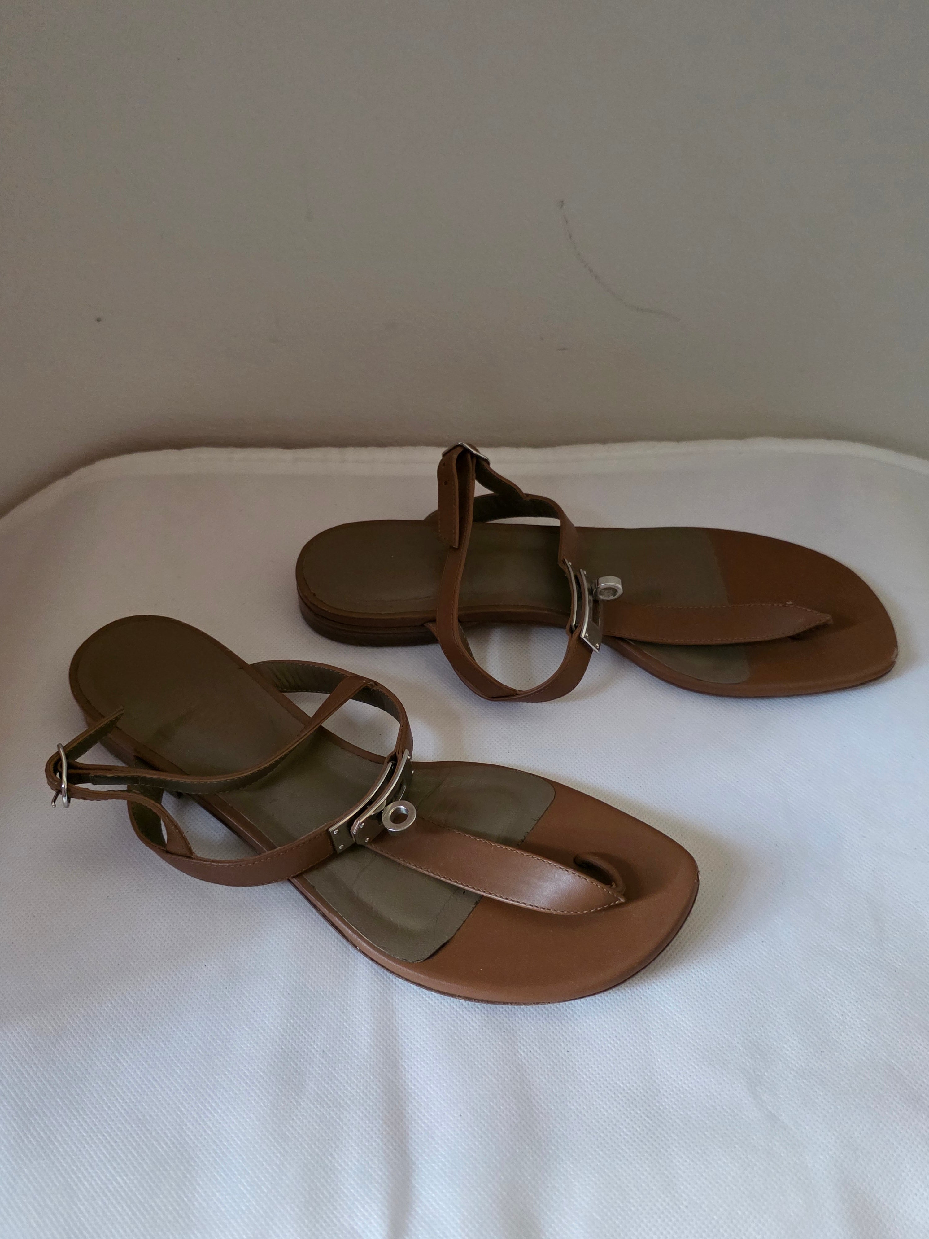 Hermès Olivia Brown Leather T-Strap Sandals 36 sz