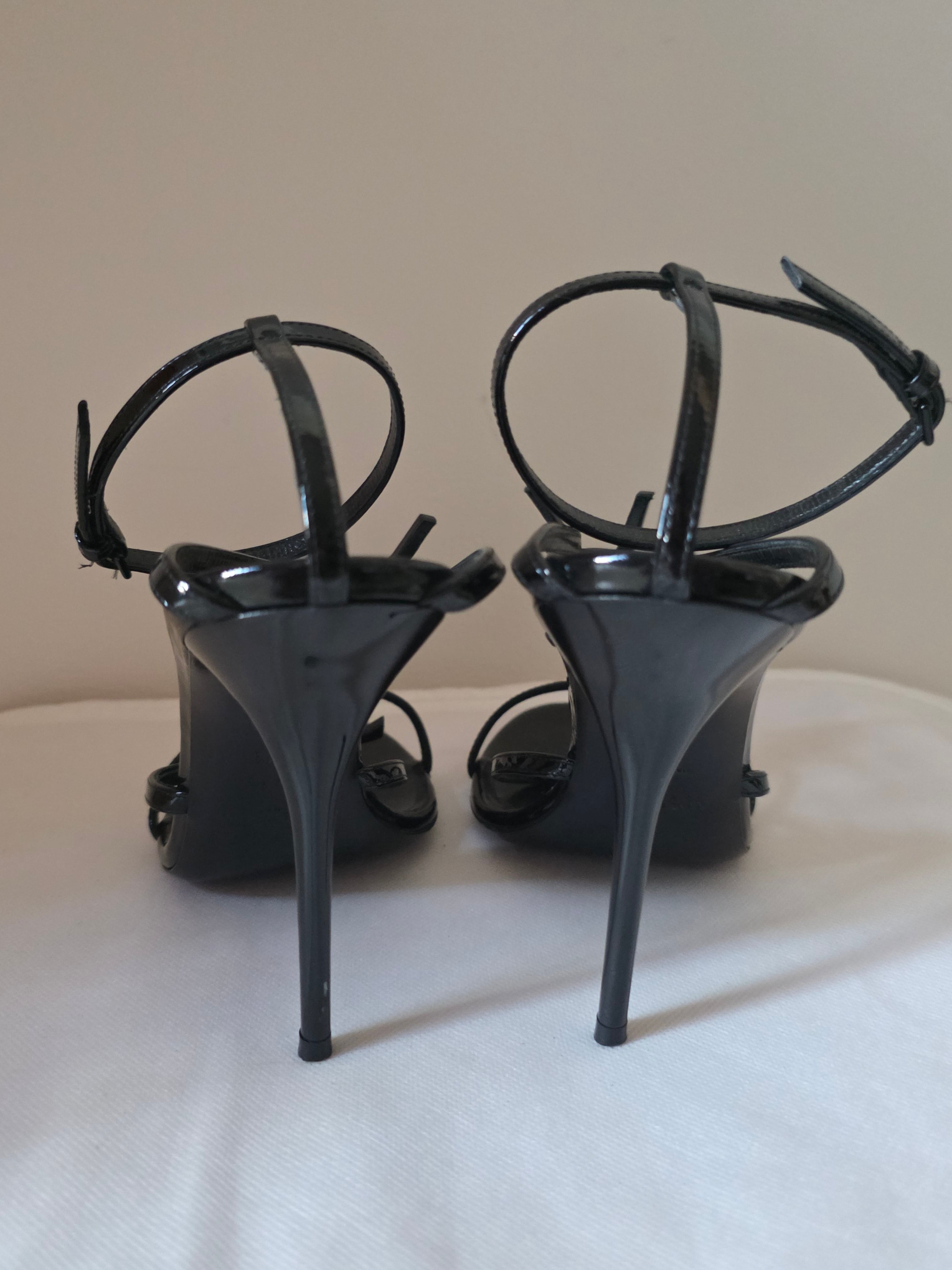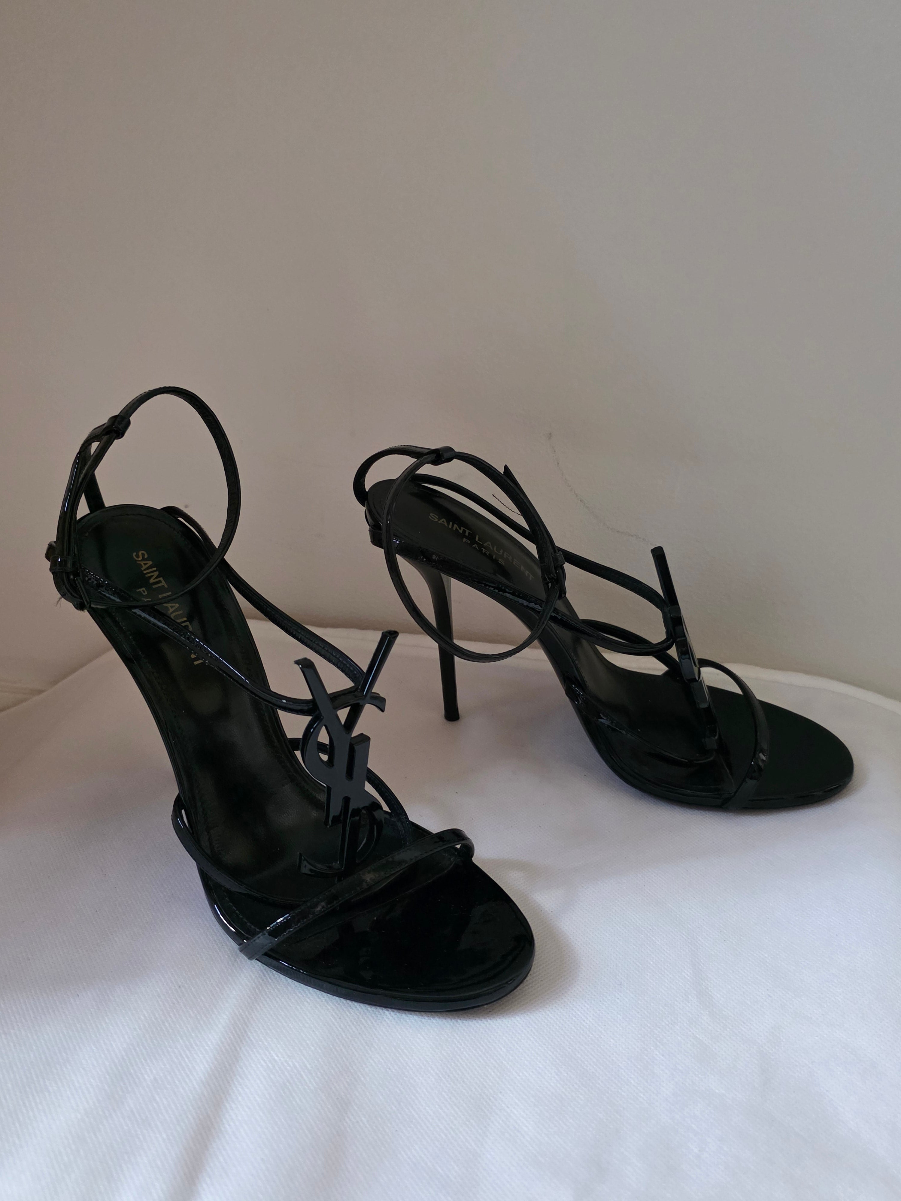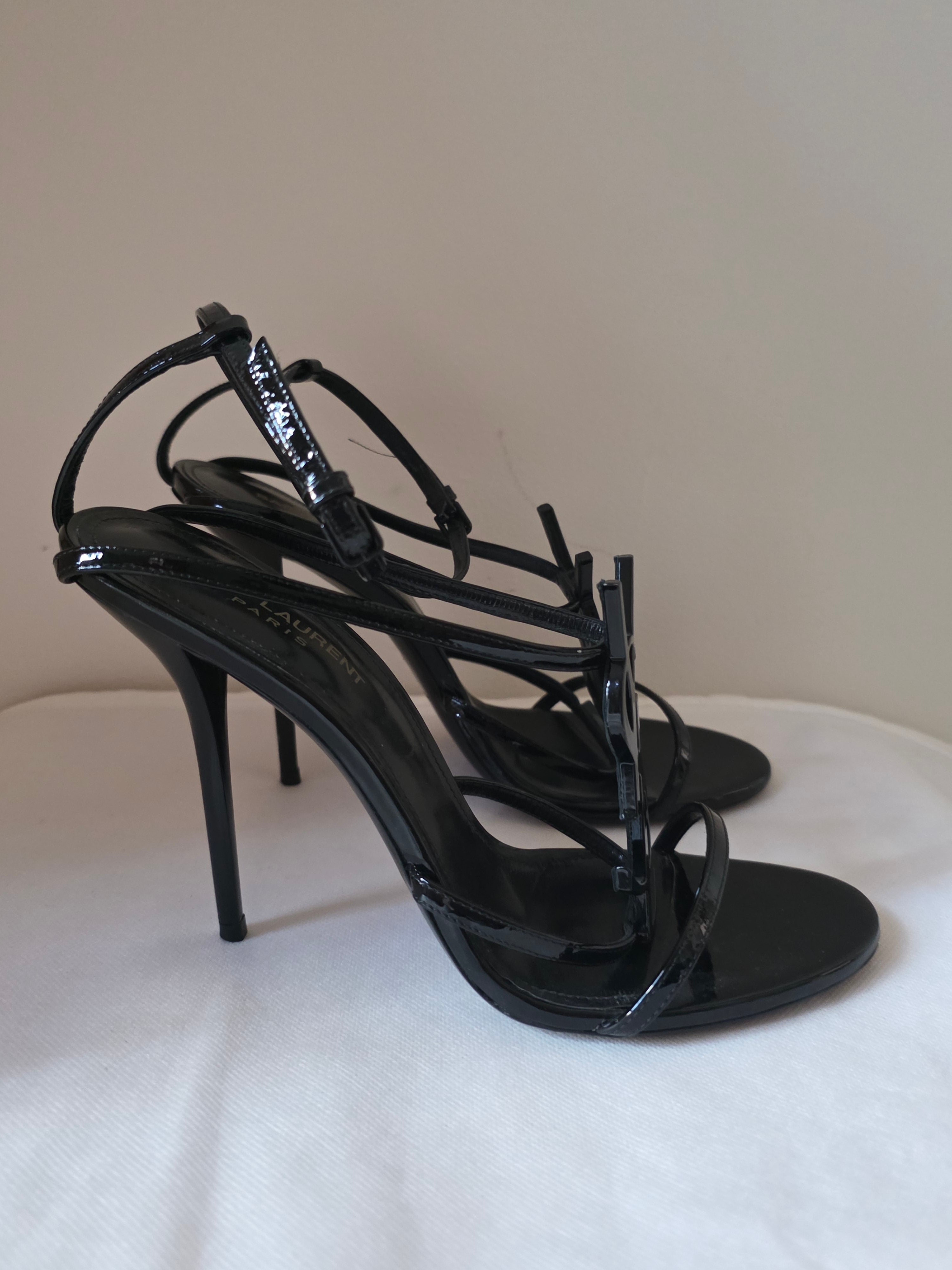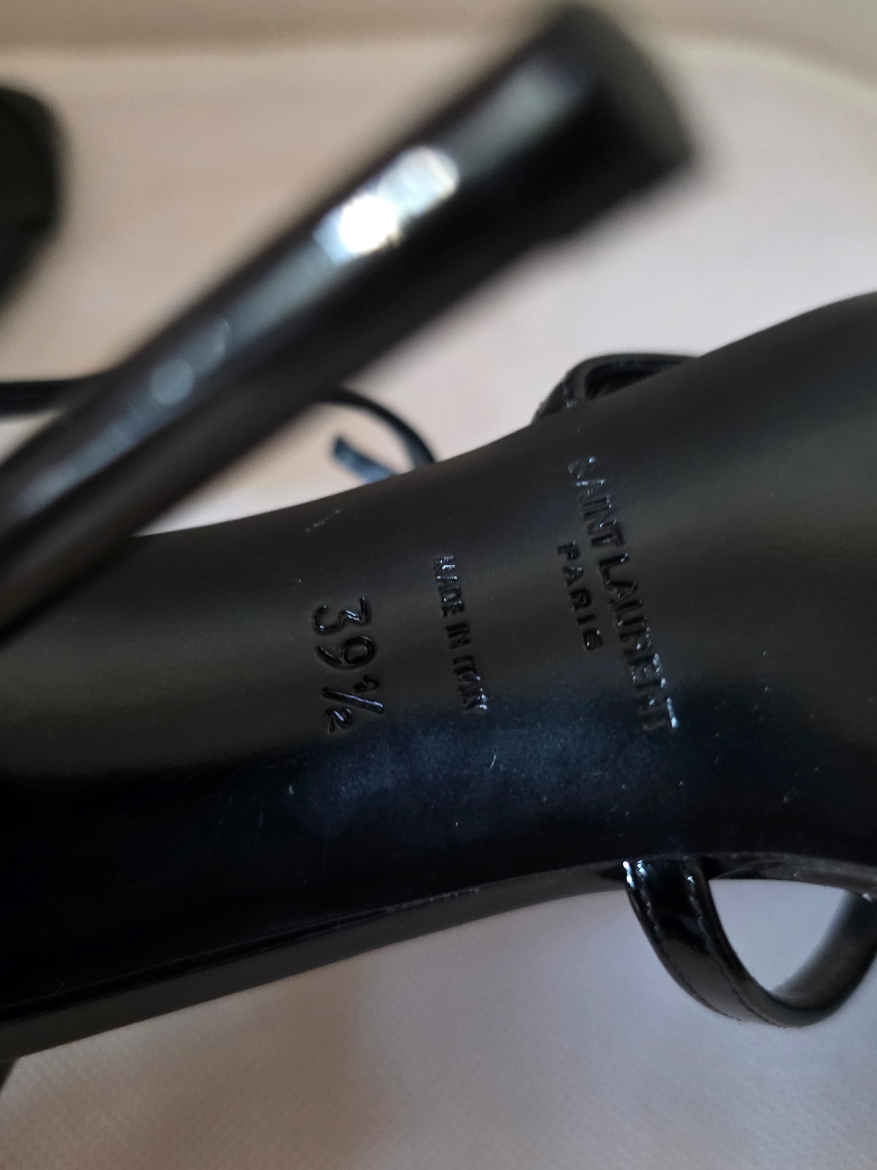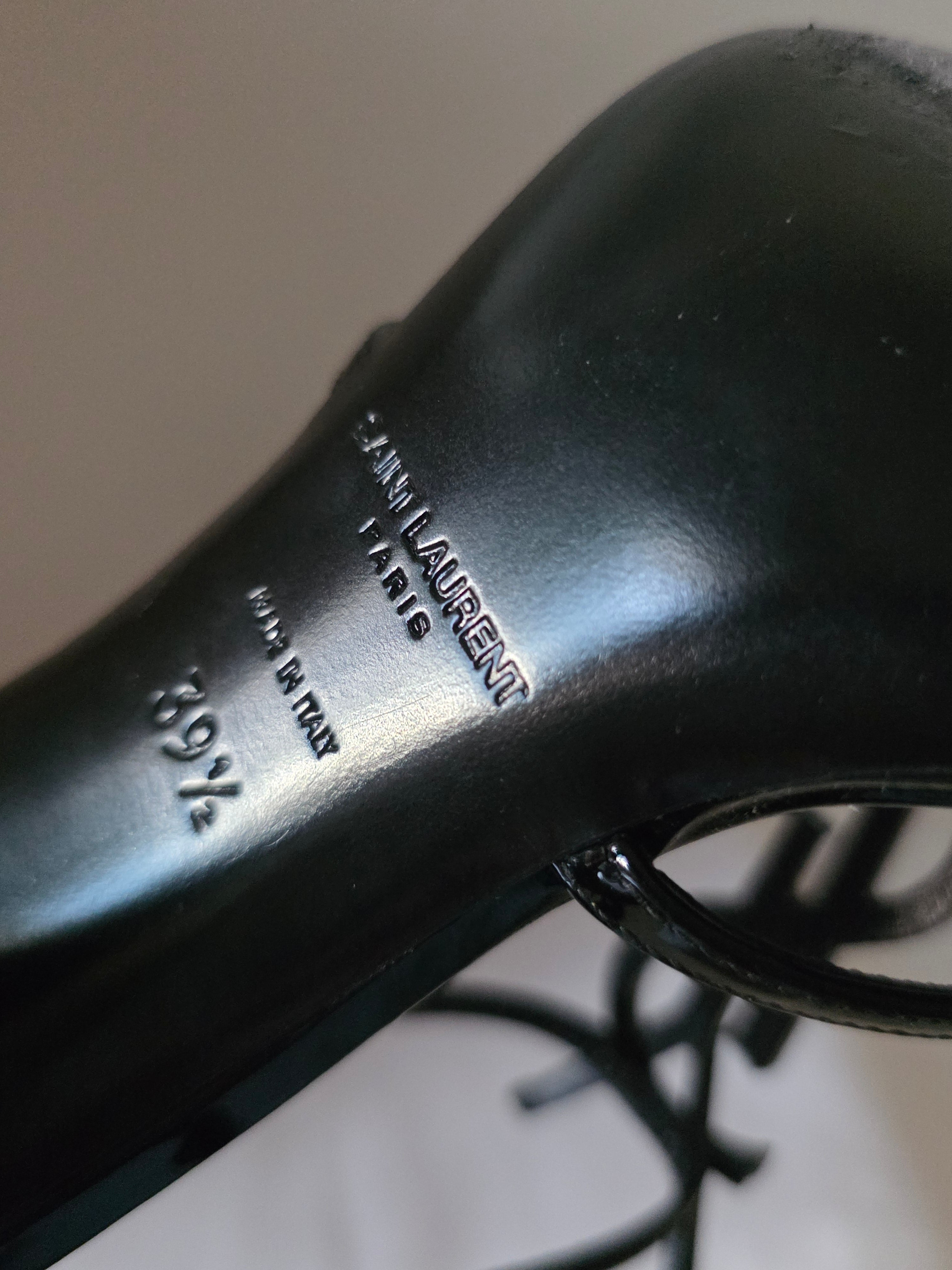 Saint Laurent Opyum Black Patent Leather YSL T-Strap Sandals 39.5 sz
