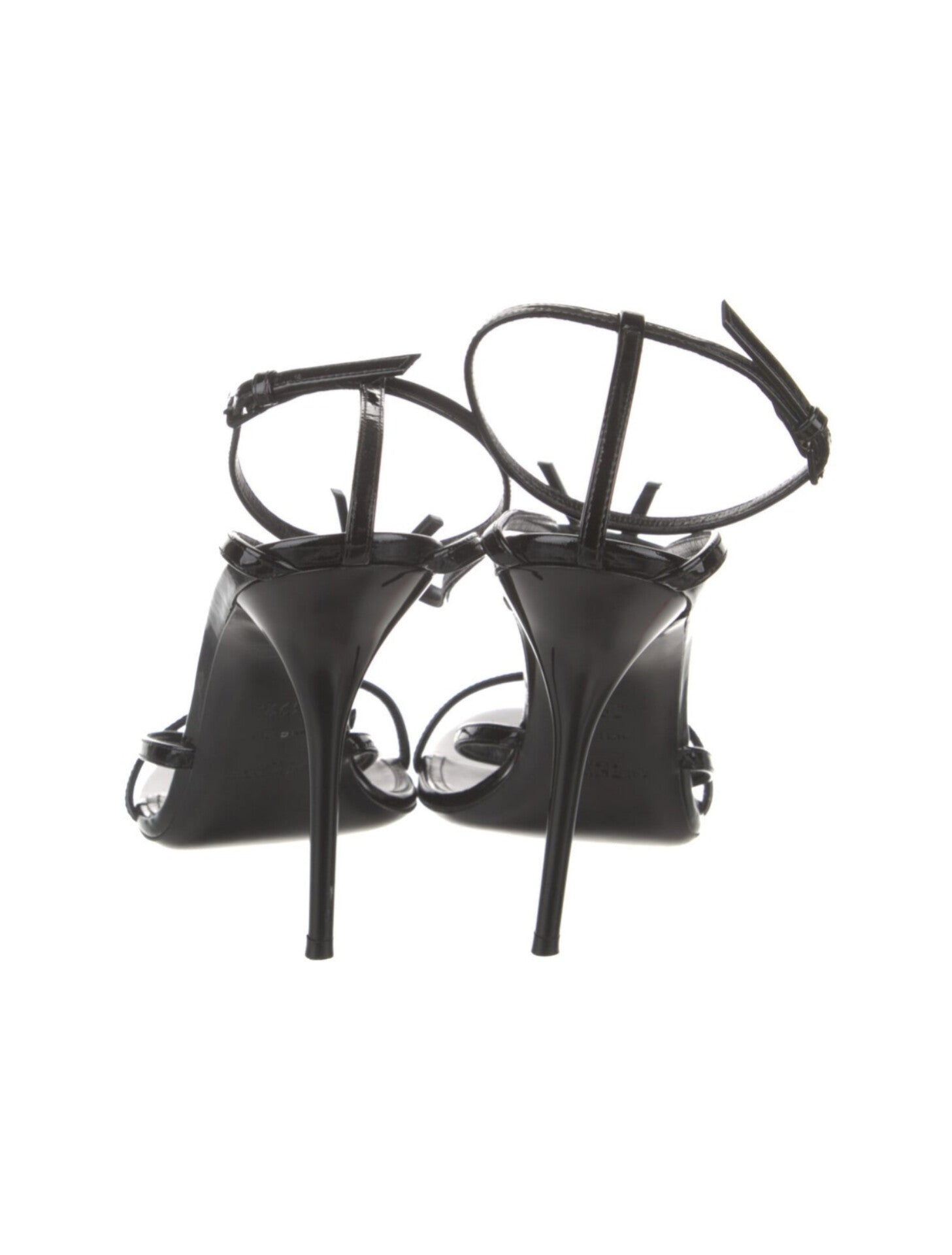 Expertly crafted from high-quality black patent leather, the Saint Laurent Opyum T-Strap Sandals offer a sleek and sophisticated addition to any wardrobe. The multi-strap design and buckle closure at the ankles provide a secure and comfortable fit, making these sandals both stylish and functional. Elevate your look with these iconic YSL sandals.