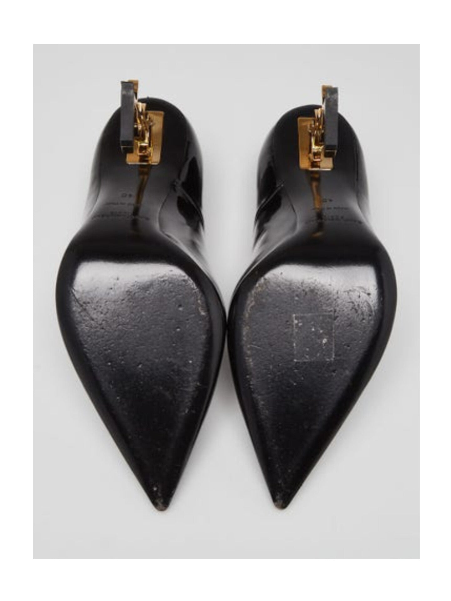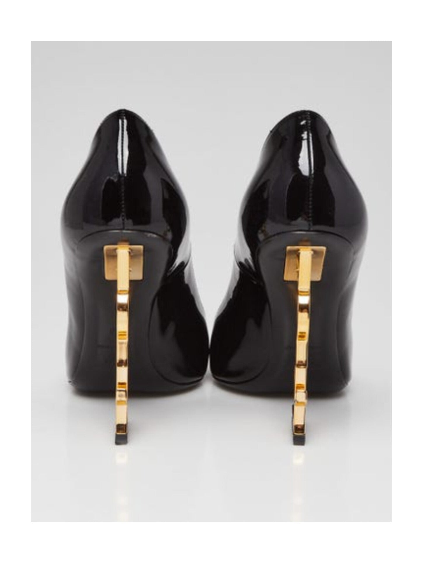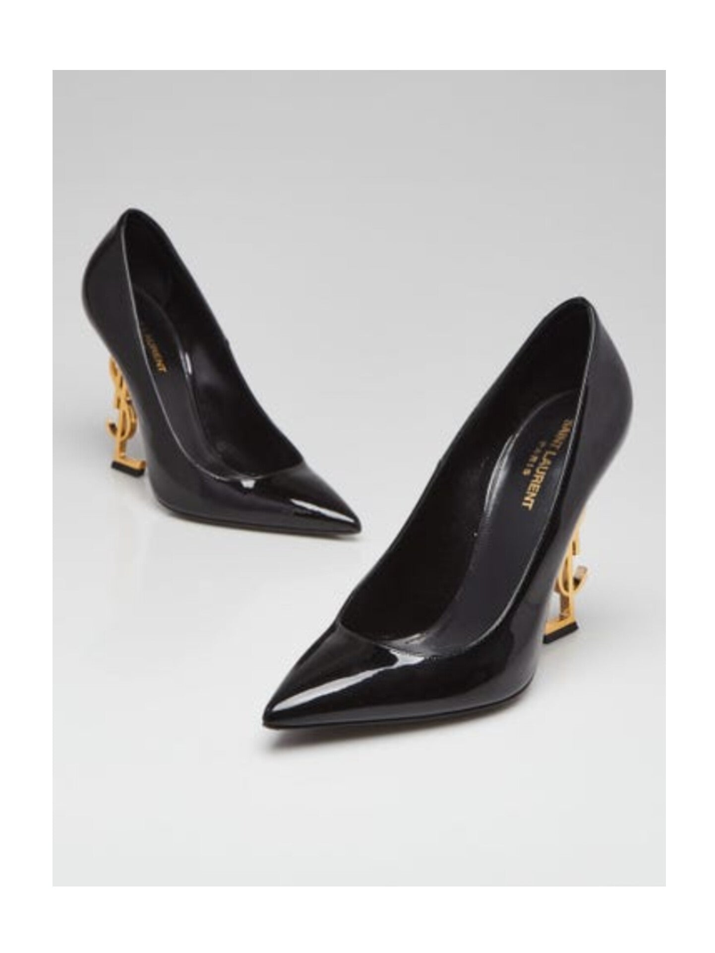 Yves Saint Laurent's Opium Monogramme pumps are your new favorite pumps! The classic pump has been modernized with patent leather and a sexy pointed toe. The 4" heel is made from glossy black metal in the iconic YSL logo that will visually lengthen your legs. Retail price is $1400.