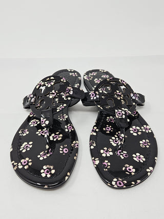 Tory Burch Black Snake print leather Reva thong sandals 7 M sz