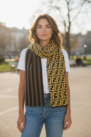 Fendi yellow btown FF Logo Printed Wool reversible scarf