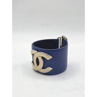 Chanel Dark Blue Metallic Cashmere Silk Knit CC Gloves