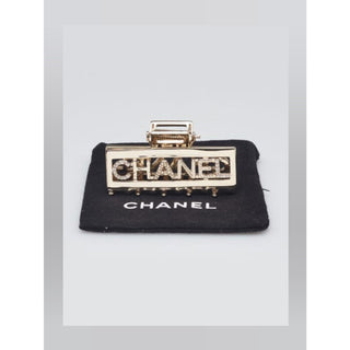 Chanel Goldtone Metal Crystal Logo Printed Hair Claw Clip