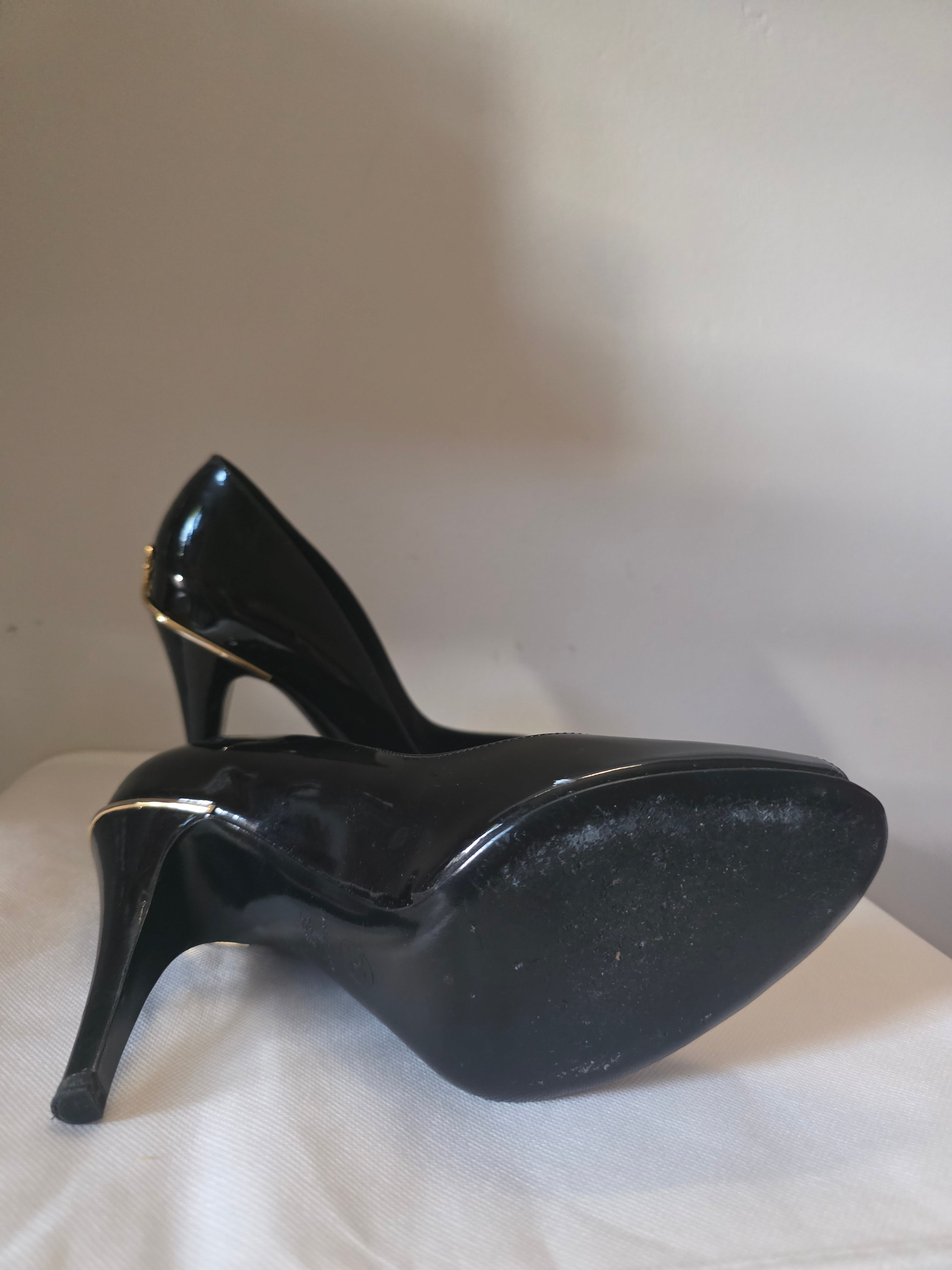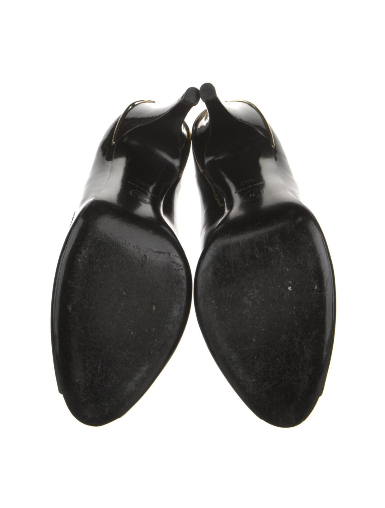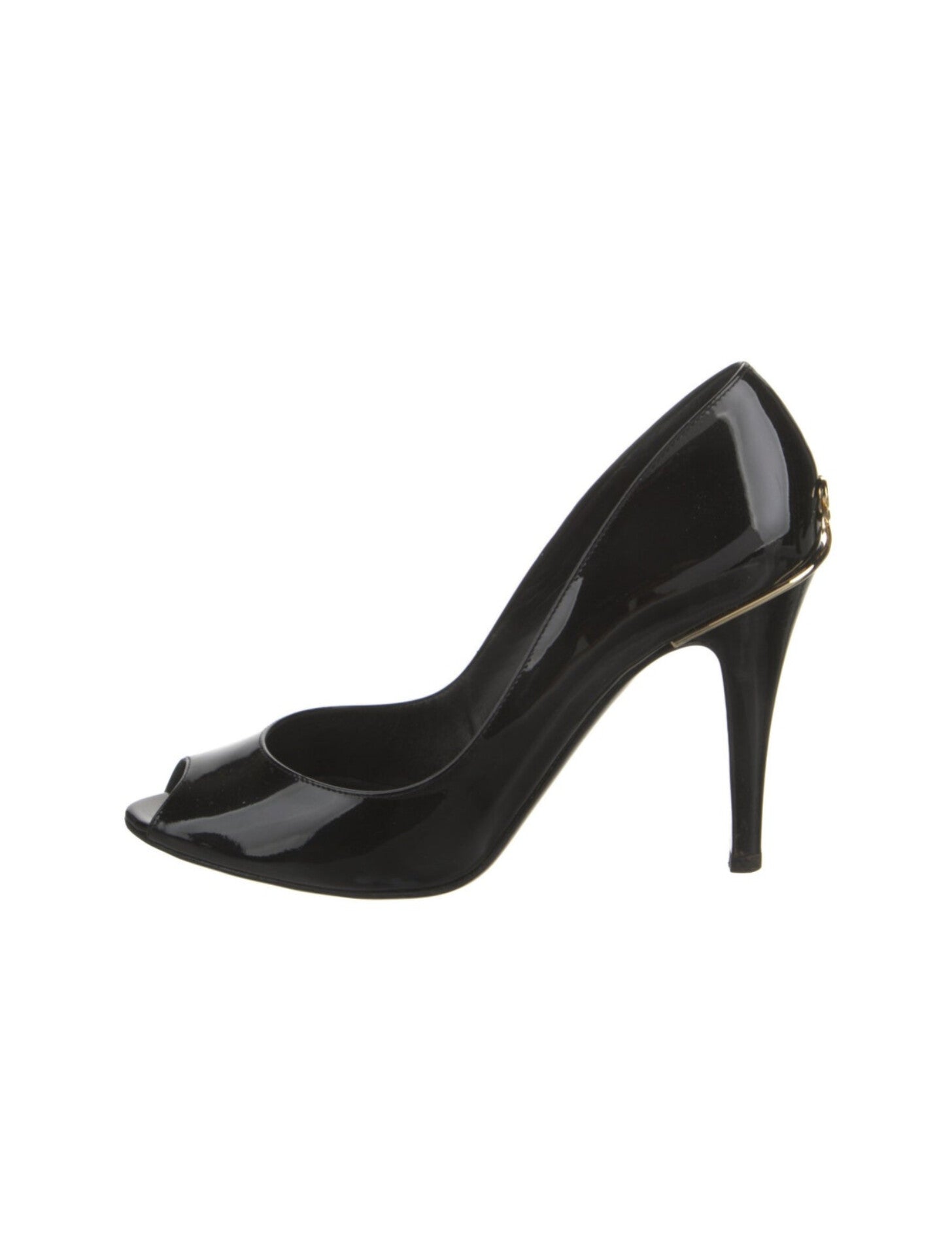 Upgrade your shoe collection with these Chanel Black Patent Leather 2008 Interlocking CC Logo Pumps. From the Cruise 2008 Collection by Karl Lagerfeld, these pumps boast a sleek black design with the iconic interlocking CC logo. Their peep-toe style and platform add a touch of sophistication, while the box and additional heel caps make for easy storage and maintenance.