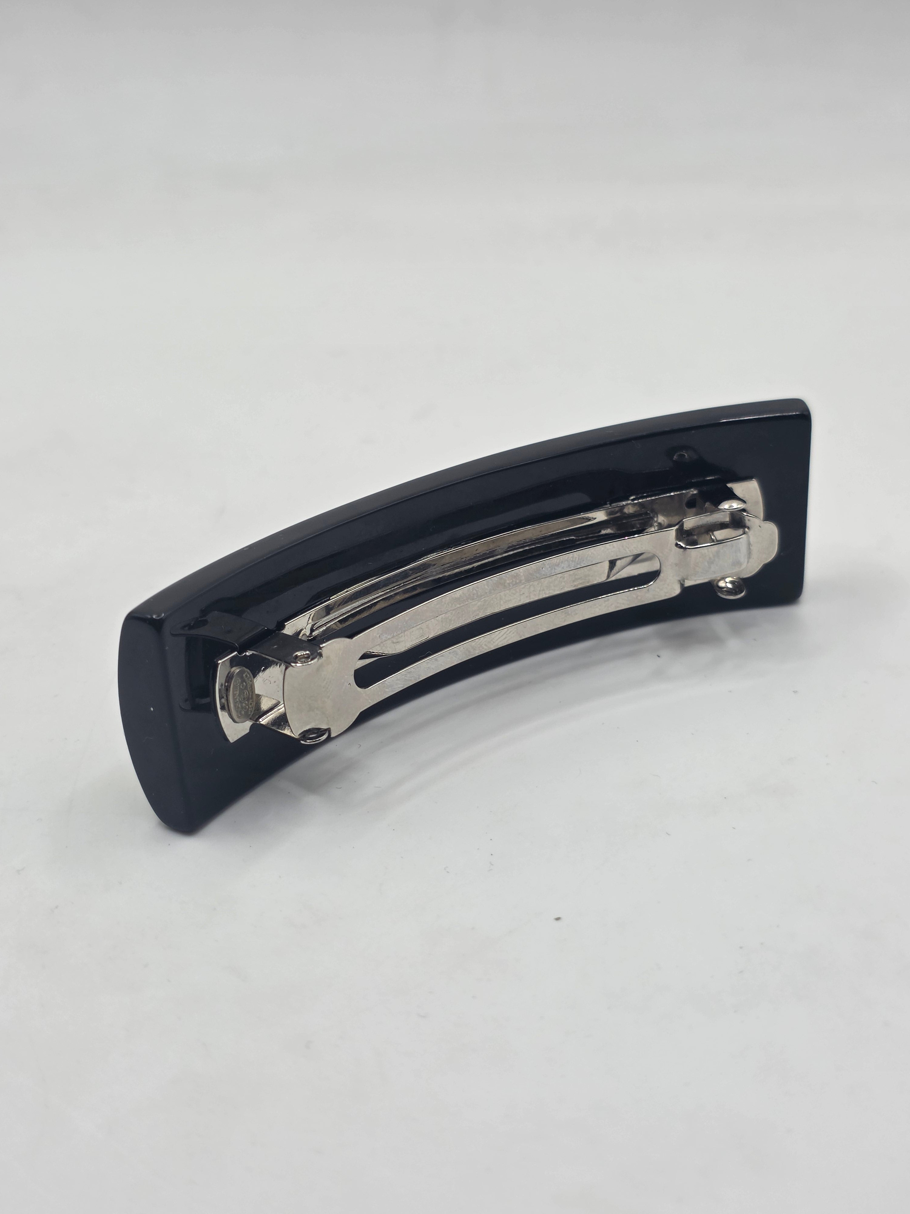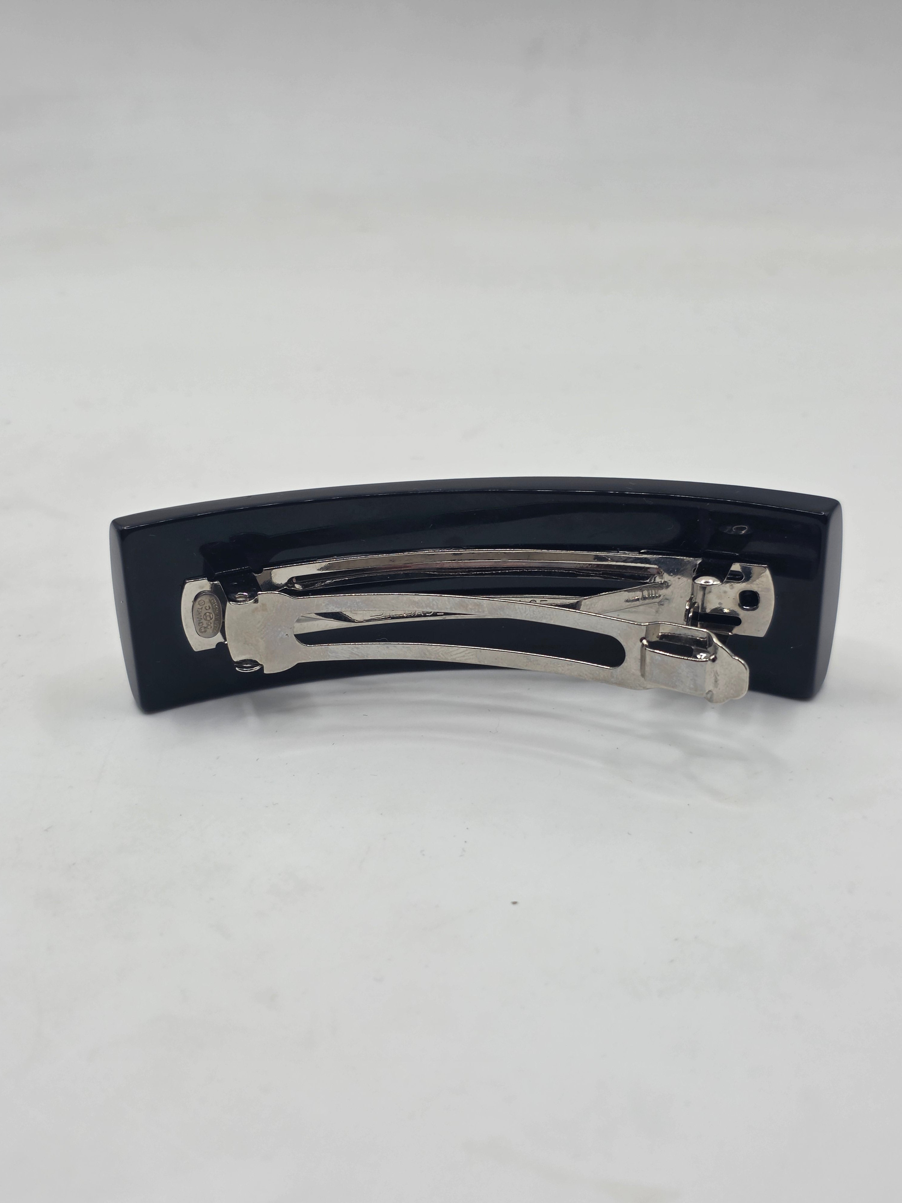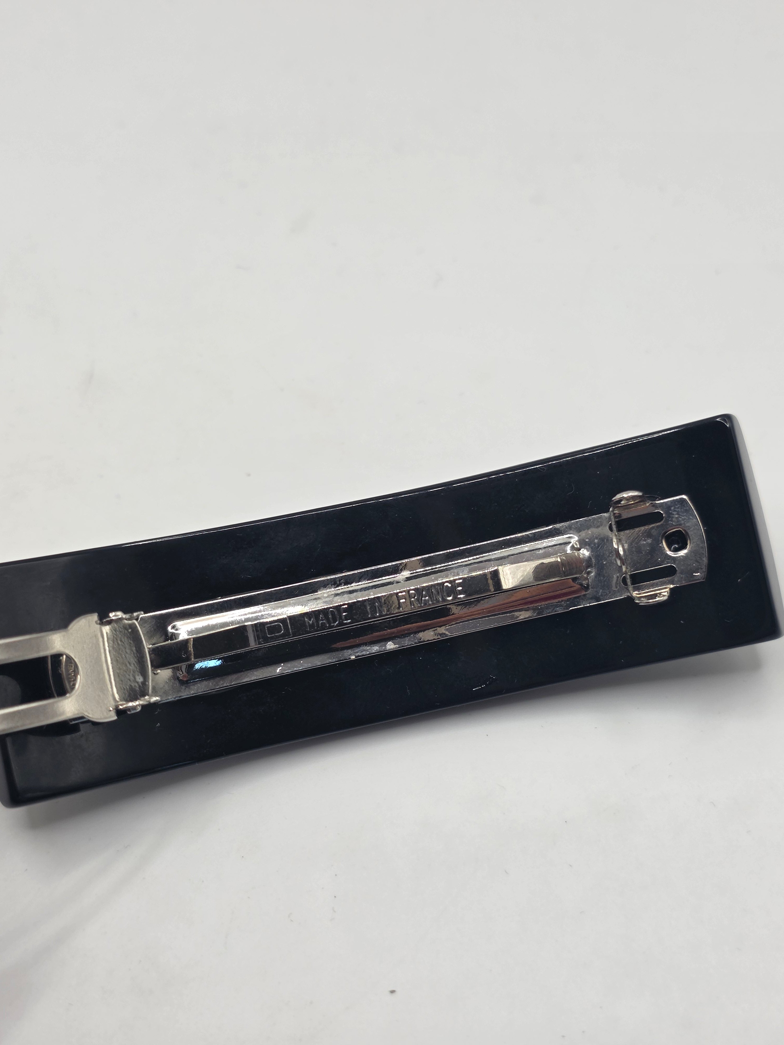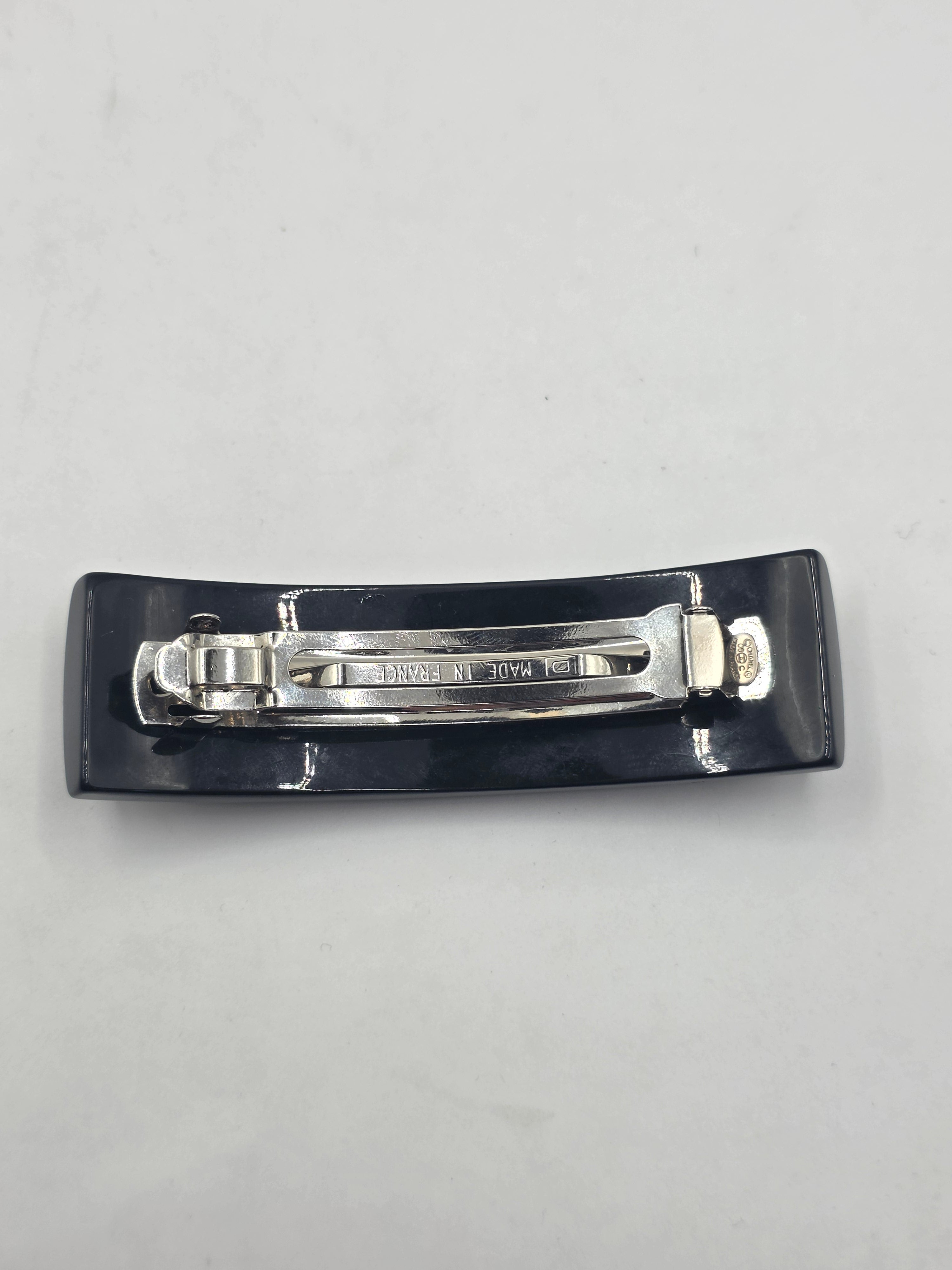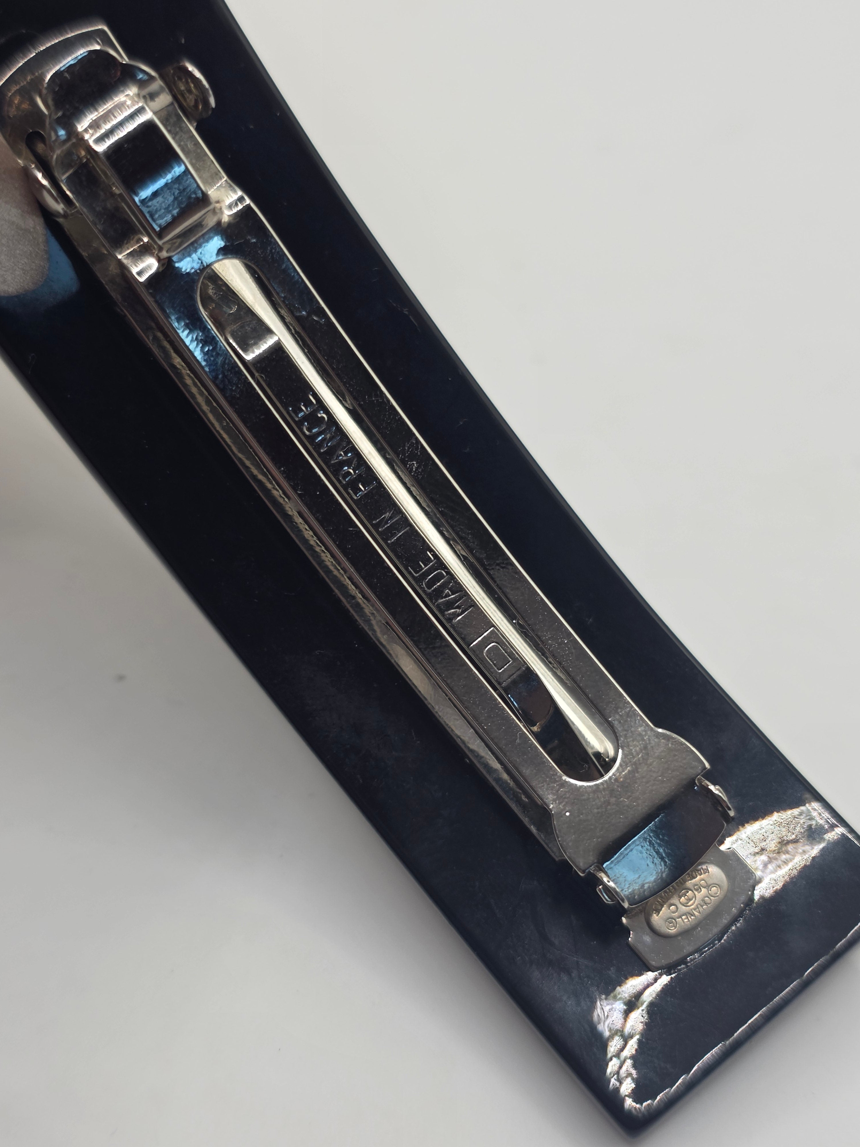 Upgrade your hair accessory game with the Chanel Black white Polka Dot Interlocking CC Hair Clip. The chic polka dot design and iconic CC motif add a touch of elegance and style to any hairdo. Made with high-quality materials, this hair clip is a must-have for any fashionista.