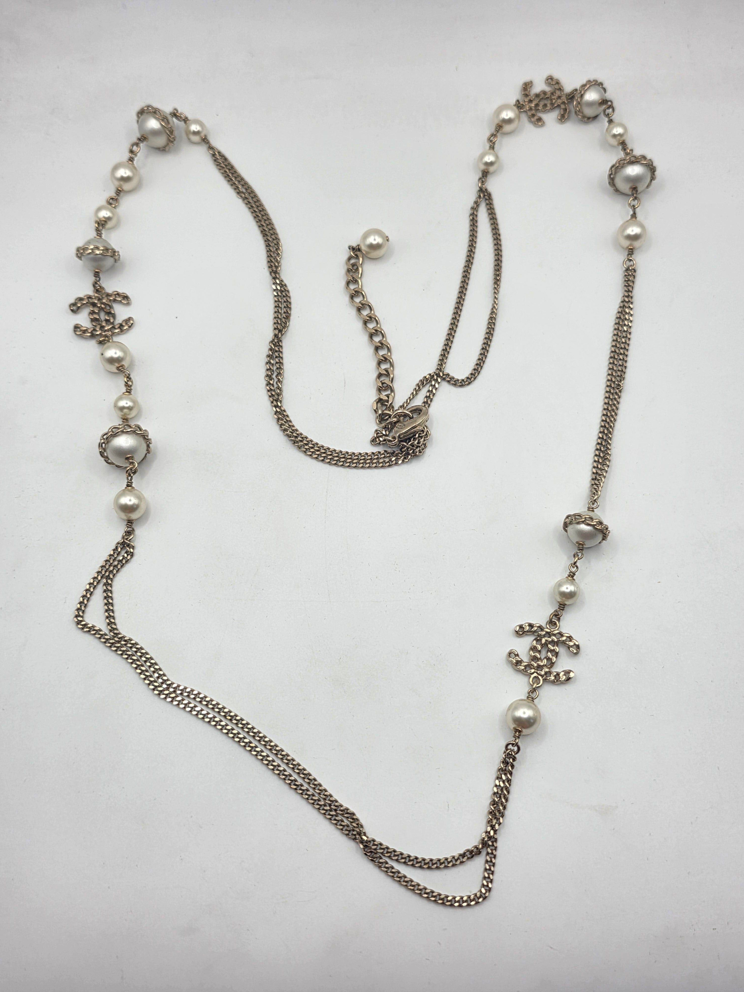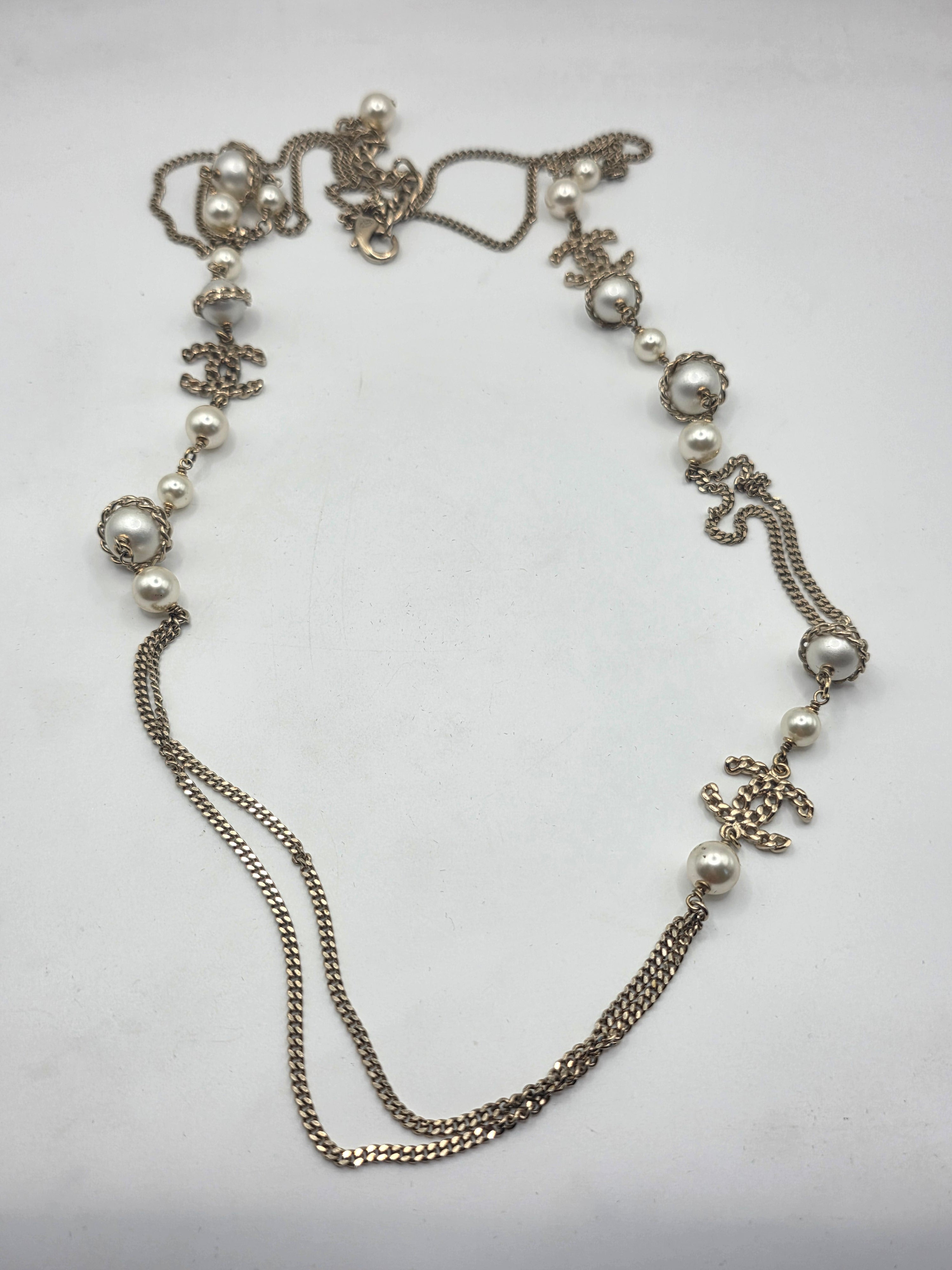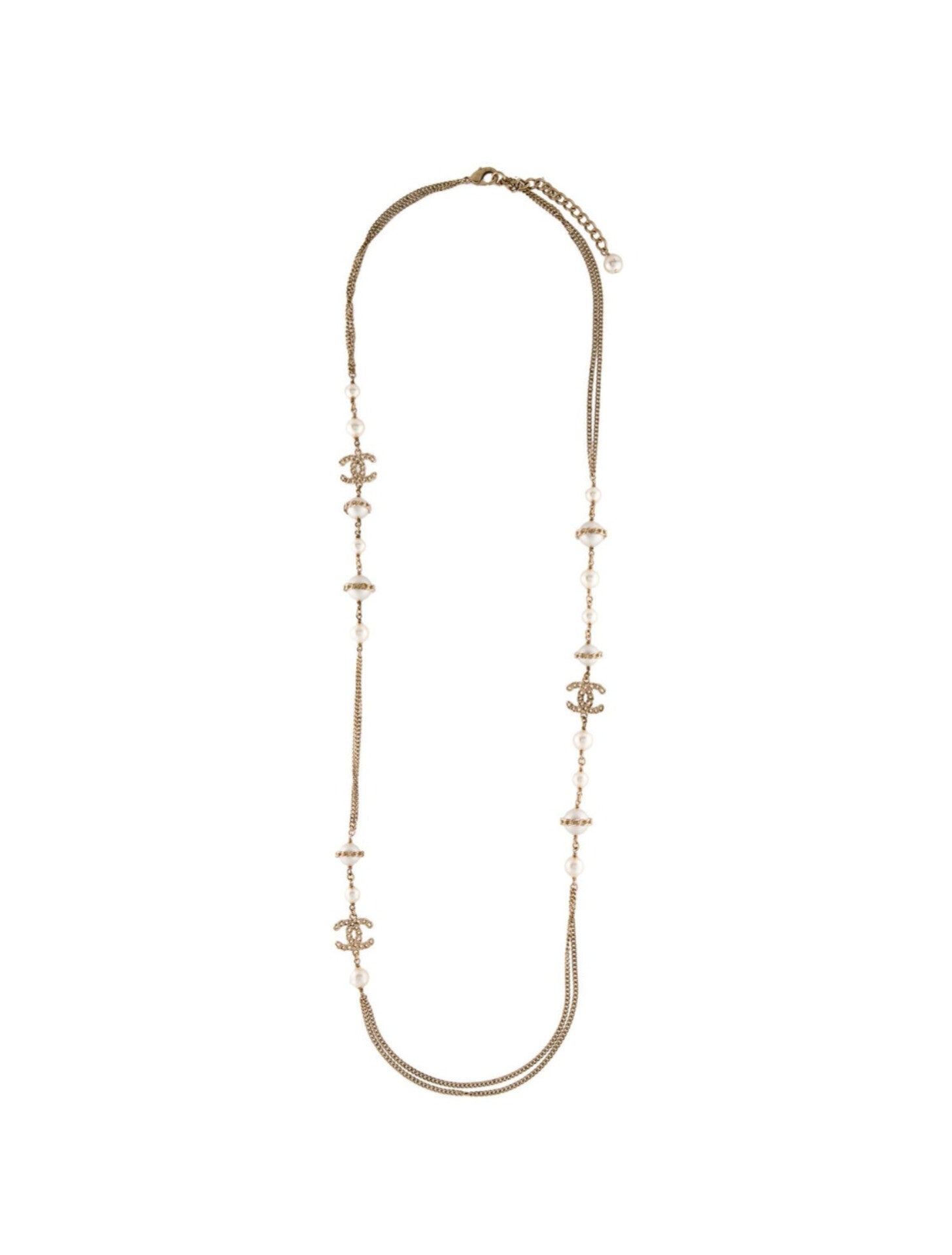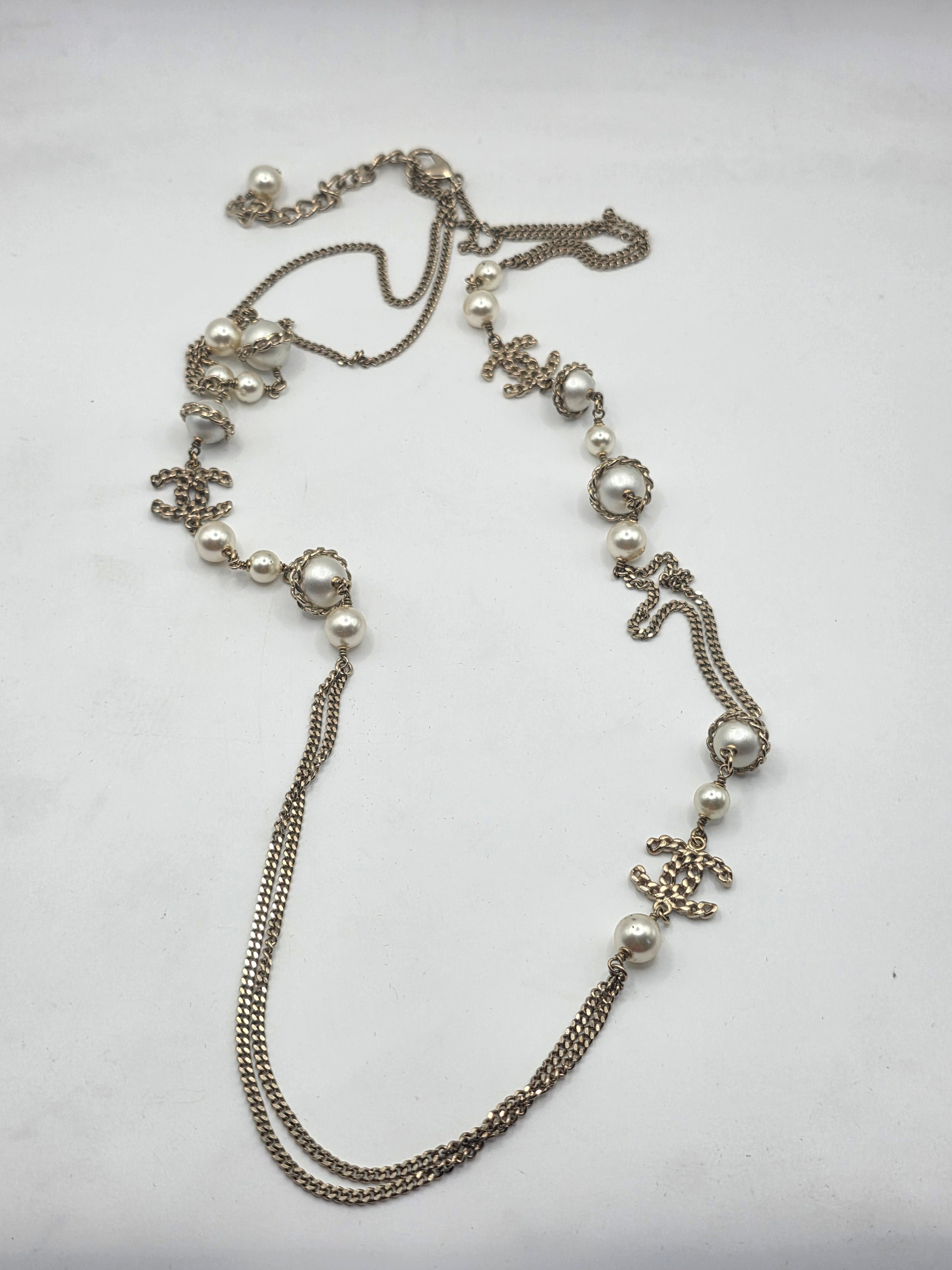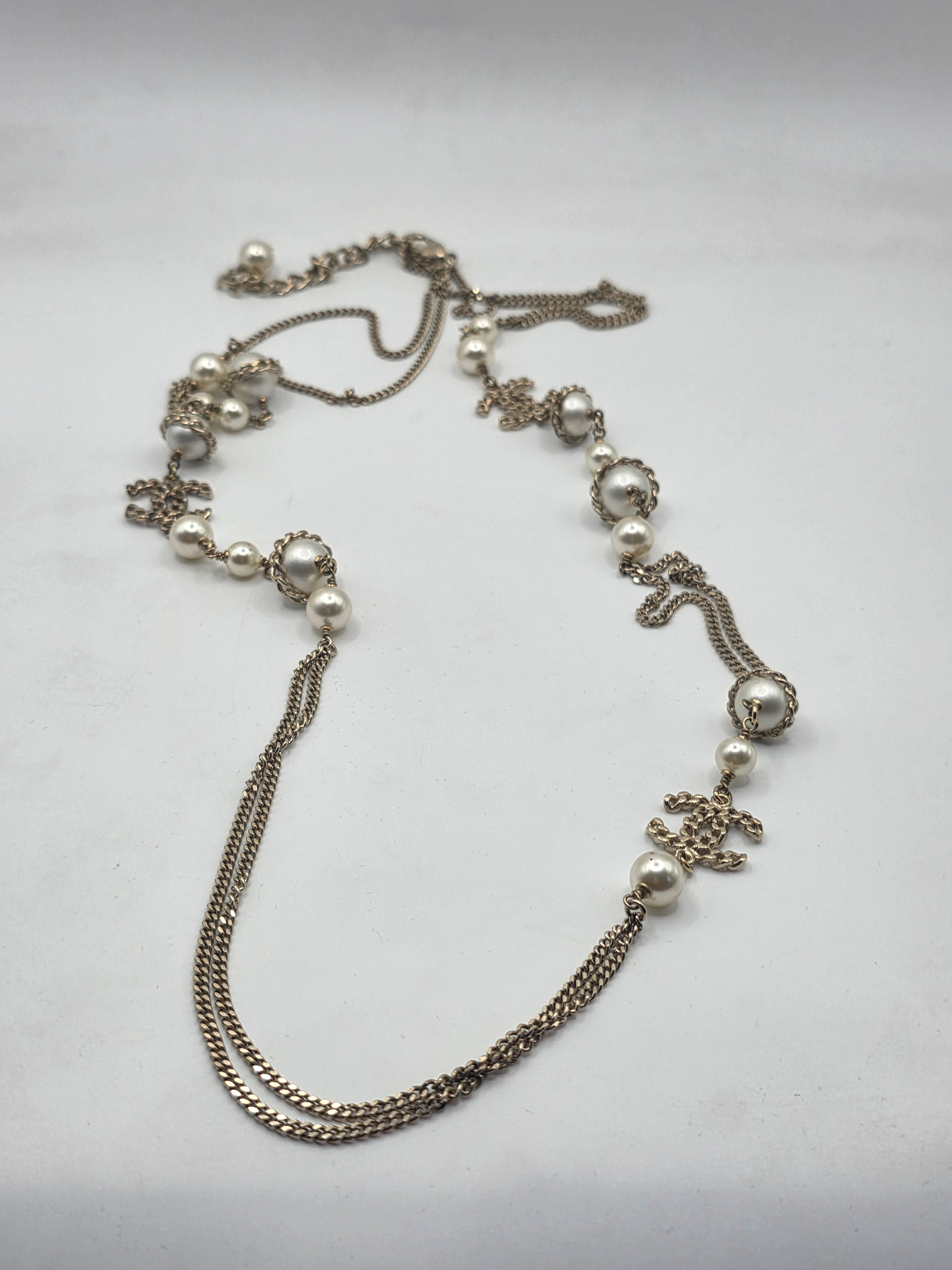 Chanel Faux Pearl CC Station Double Strand Necklace