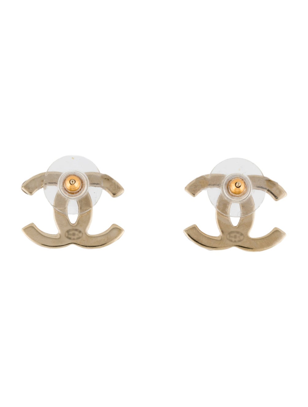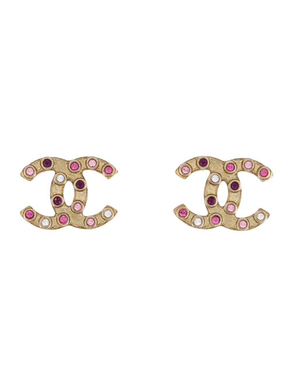 Chanel Gold-tone Pink Strass Interlocking CC Stud Earrings