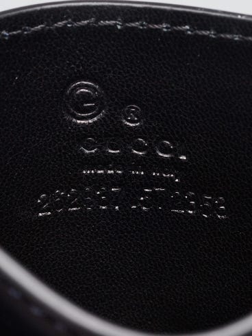 Adorned with Gucci's signature GG micro embossing this leather card holder is playful yet practical. Five card slots make carrying your plastics a breeze. Slip it into your favorite chain wallet or when you want to travel light.